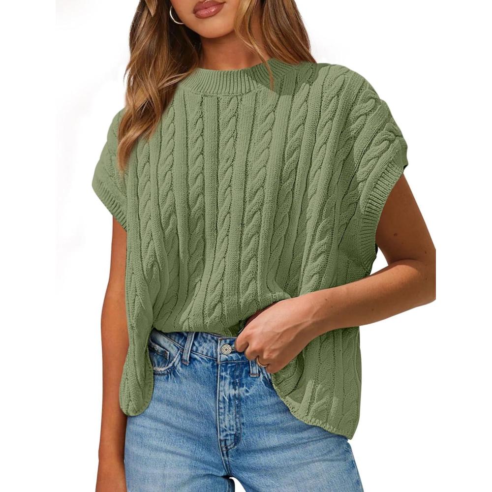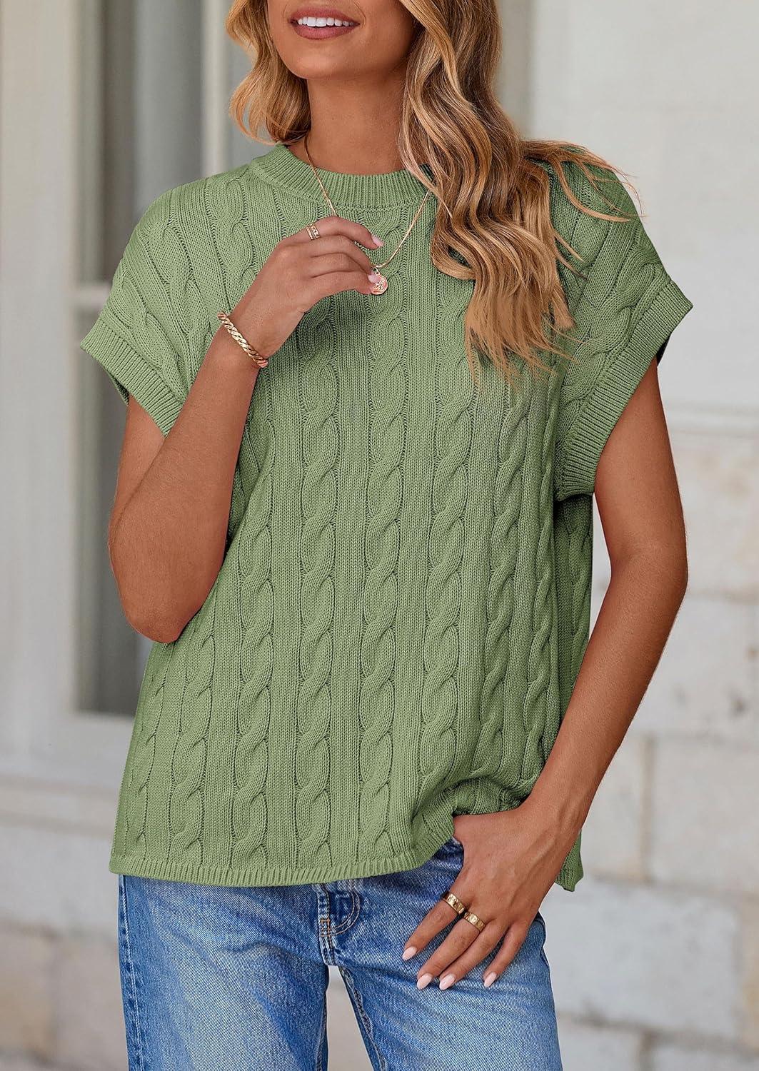 PRETTYGARDEN Women’s Sweater Vest 2025 Summer Short Sleeve Tops Casual Crewneck Knit Oversized Pullover Trendy Spring Outfits(Bean Green)