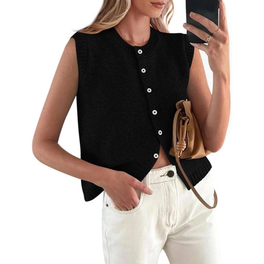 imagePRETTYGARDEN Womens Sweater Vest Cardigans 2025 Fall Lightweight Casual Sleeveless Button Down Knit Tank TopsBlack