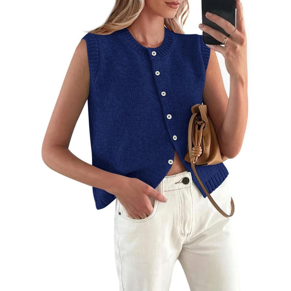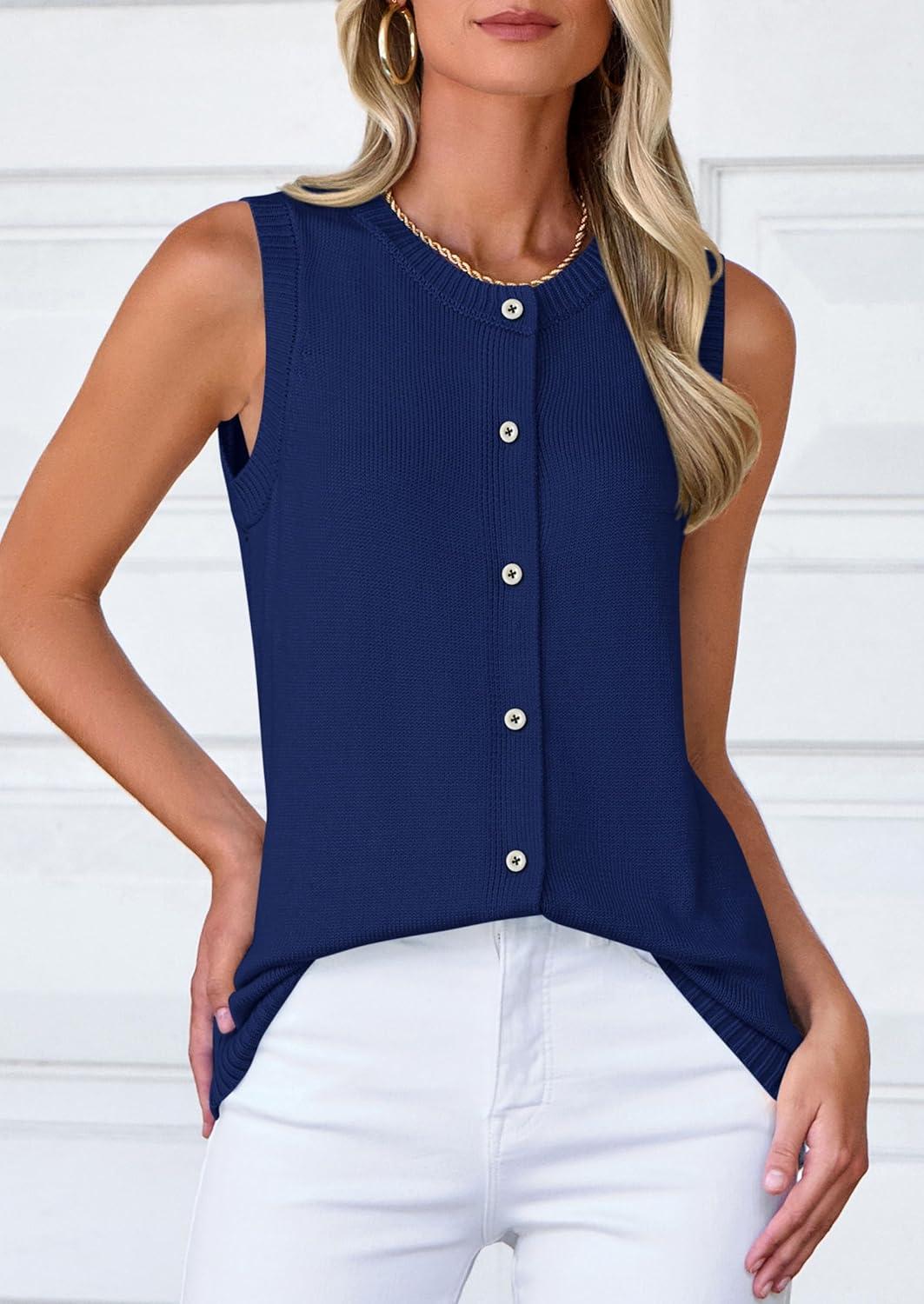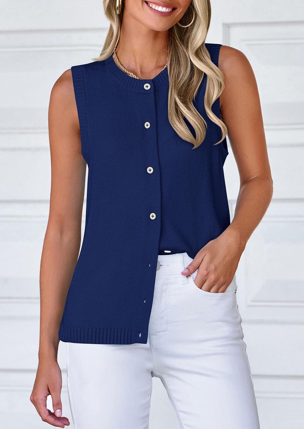 PRETTYGARDEN Womens Sweater Vest Cardigans 2025 Fall Lightweight Casual Sleeveless Button Down Knit Tank Tops(Dark Blue)