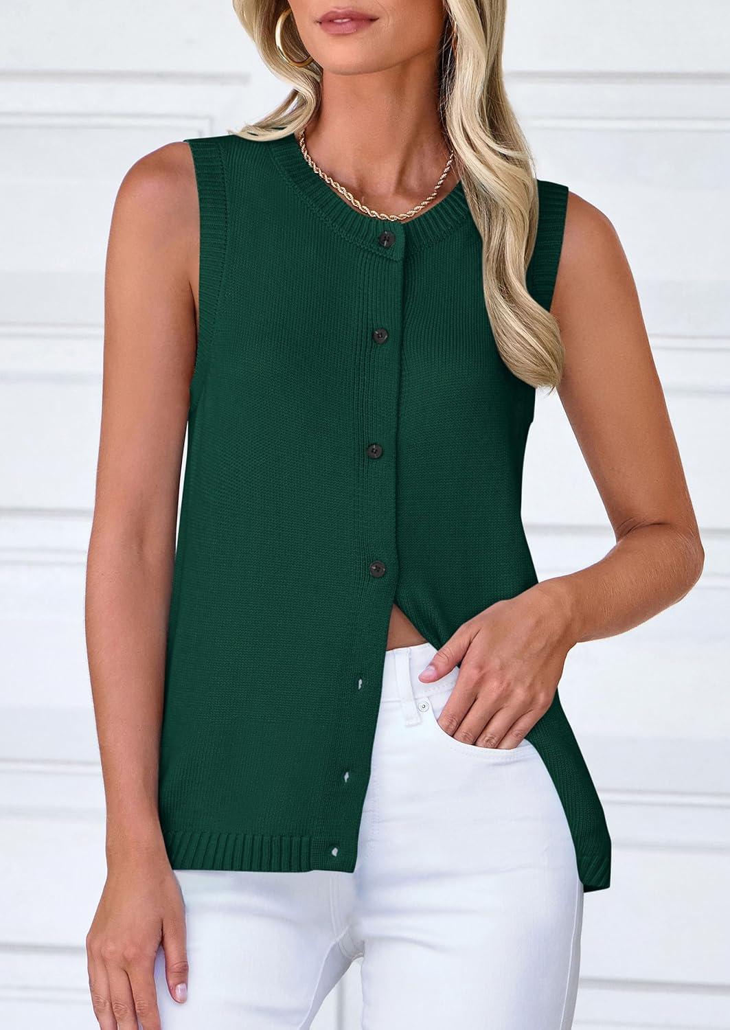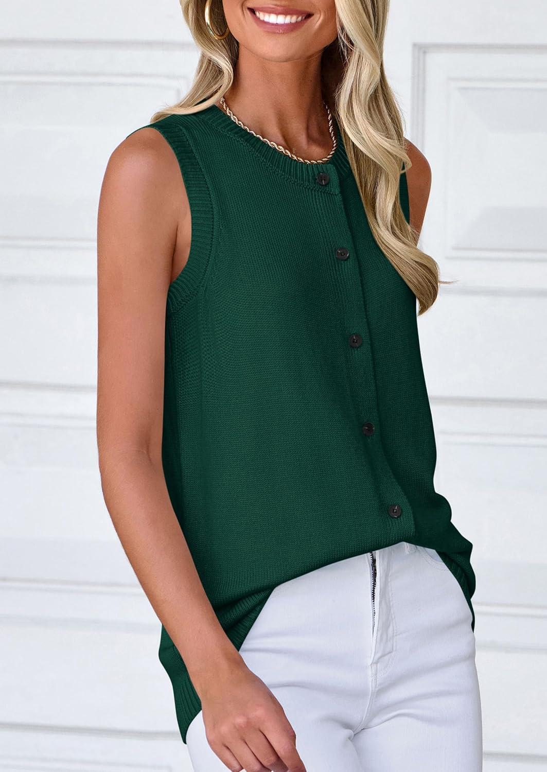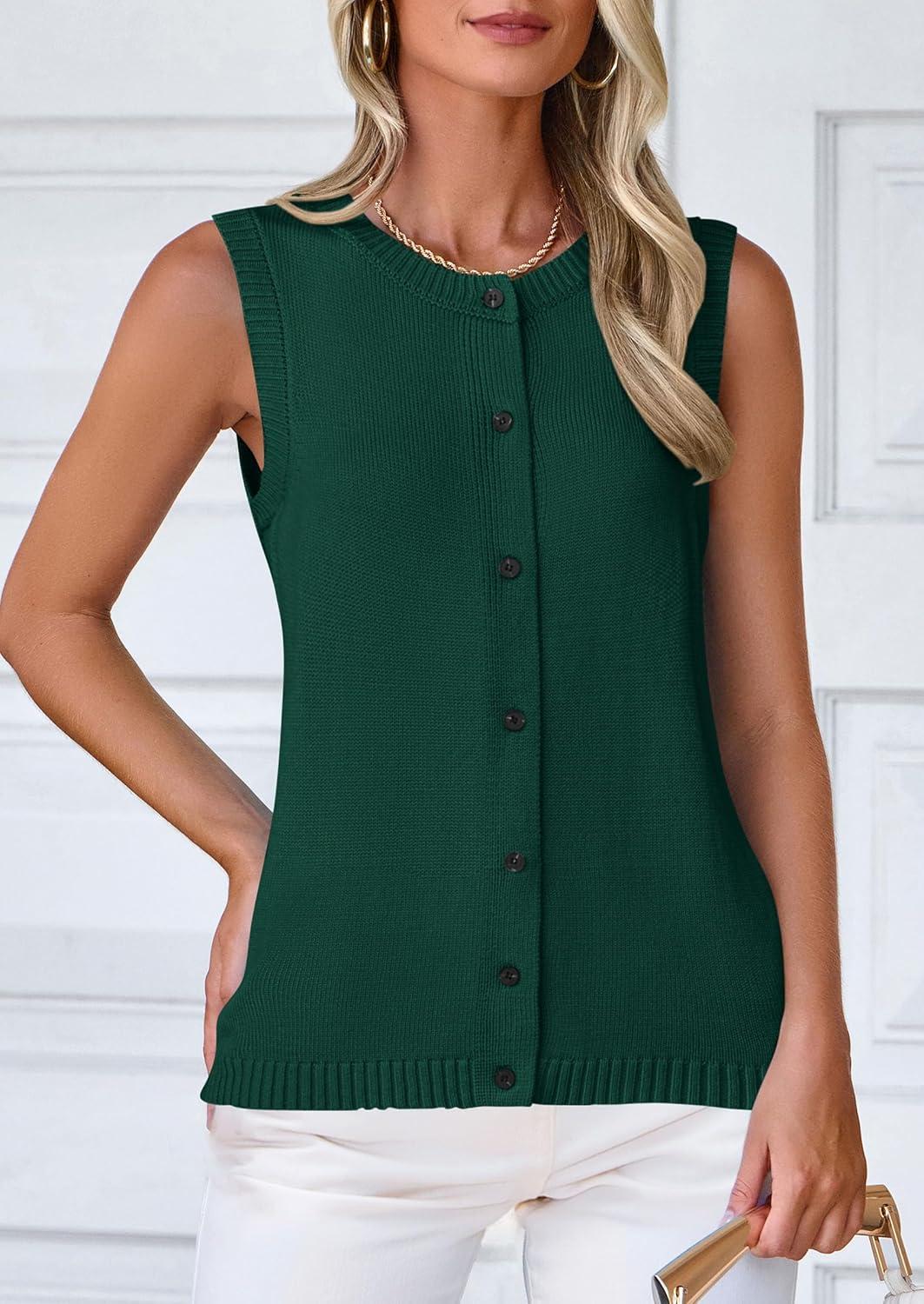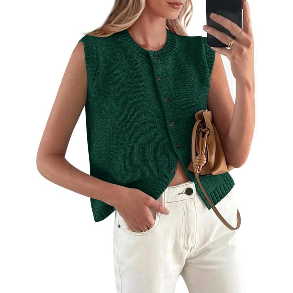 PRETTYGARDEN Womens Sweater Vest Cardigans 2025 Fall Lightweight Casual Sleeveless Button Down Knit Tank Tops(Dark Green)