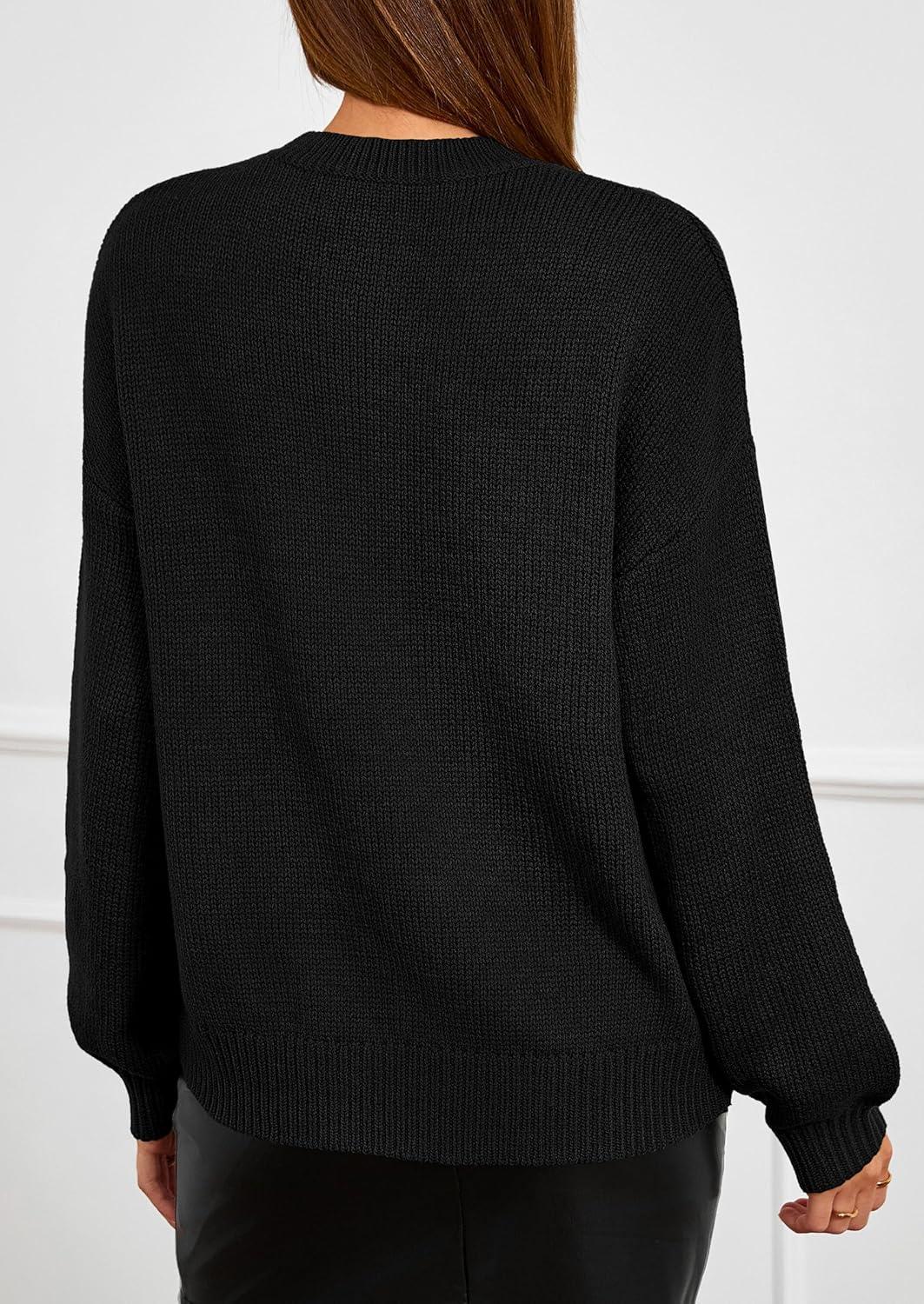 PRETTYGARDEN Womens Sweaters 2025 Fall Fashion Long Sleeve Crewneck Floral Knit Pullover Sweater Tops Winter Clothes(Black)