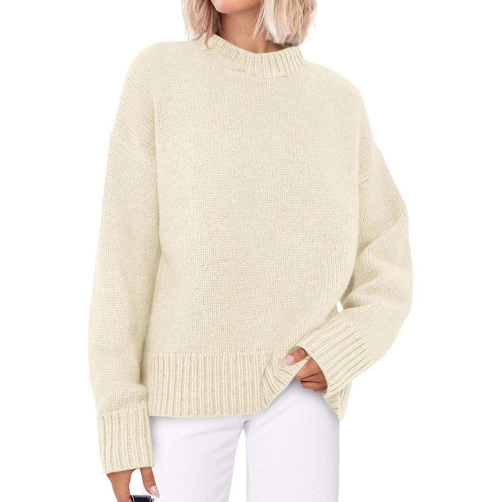 PRETTYGARDEN Womens Sweaters Fall 2025 Trendy Casual Crewneck Long Sleeve Cozy Knit Pullover Sweater Tops Winter Clothing(Beige White)