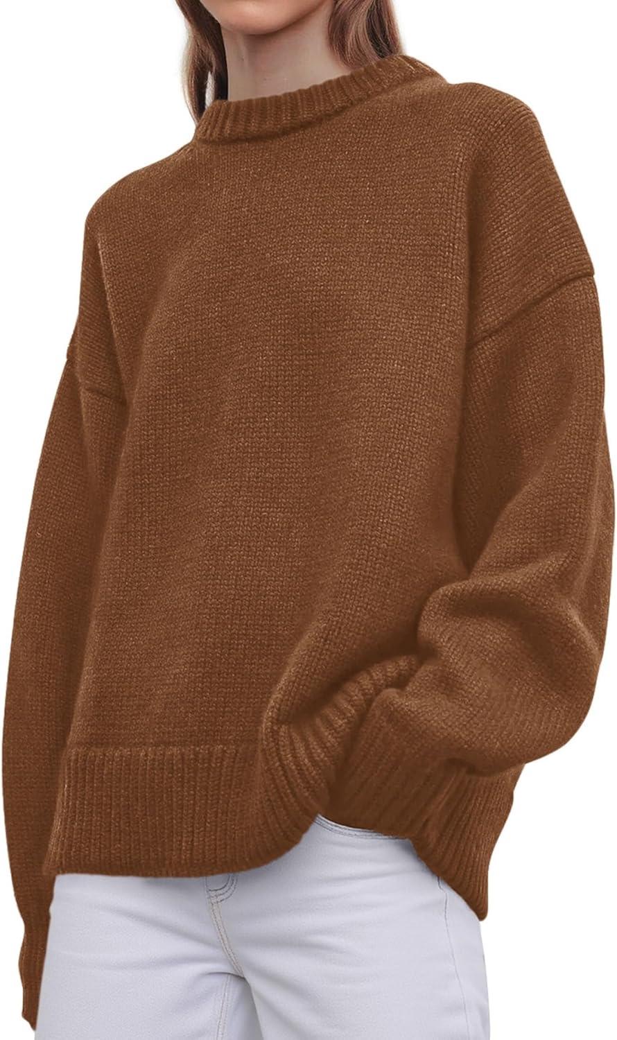 PRETTYGARDEN Womens Sweaters Fall 2025 Trendy Casual Crewneck Long Sleeve Cozy Knit Pullover Sweater Tops Winter Clothing(Caramel)