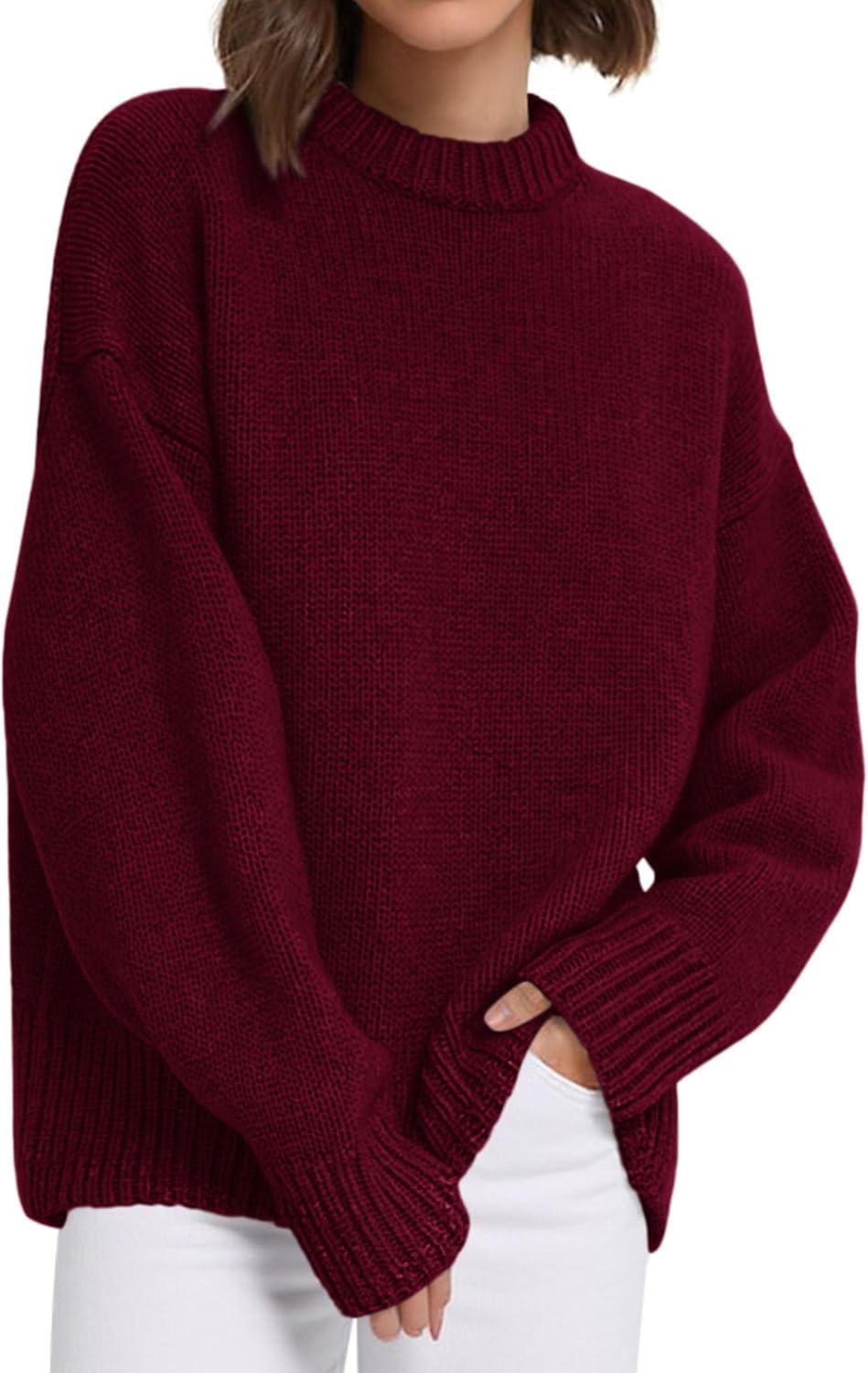 PRETTYGARDEN Womens Sweaters Fall 2025 Trendy Casual Crewneck Long Sleeve Cozy Knit Pullover Sweater Tops Winter Clothing(Wine Red)