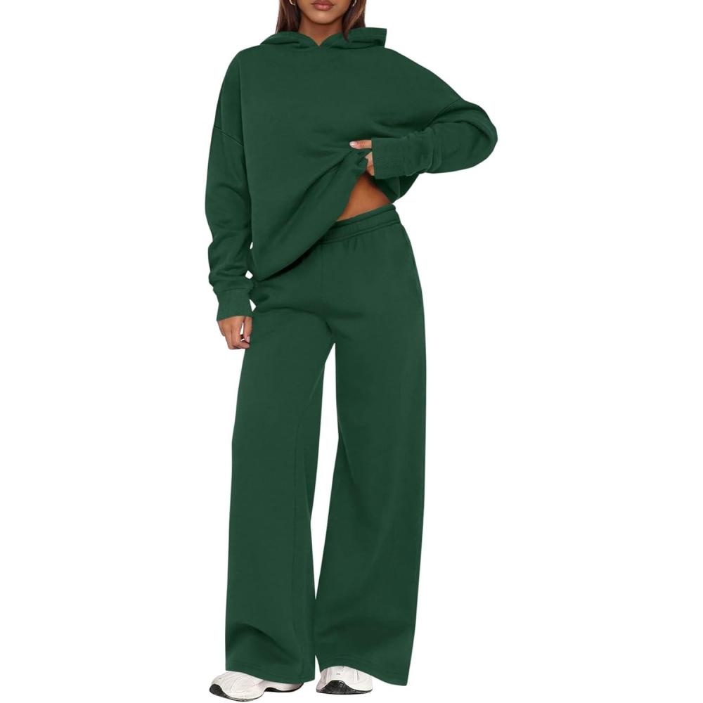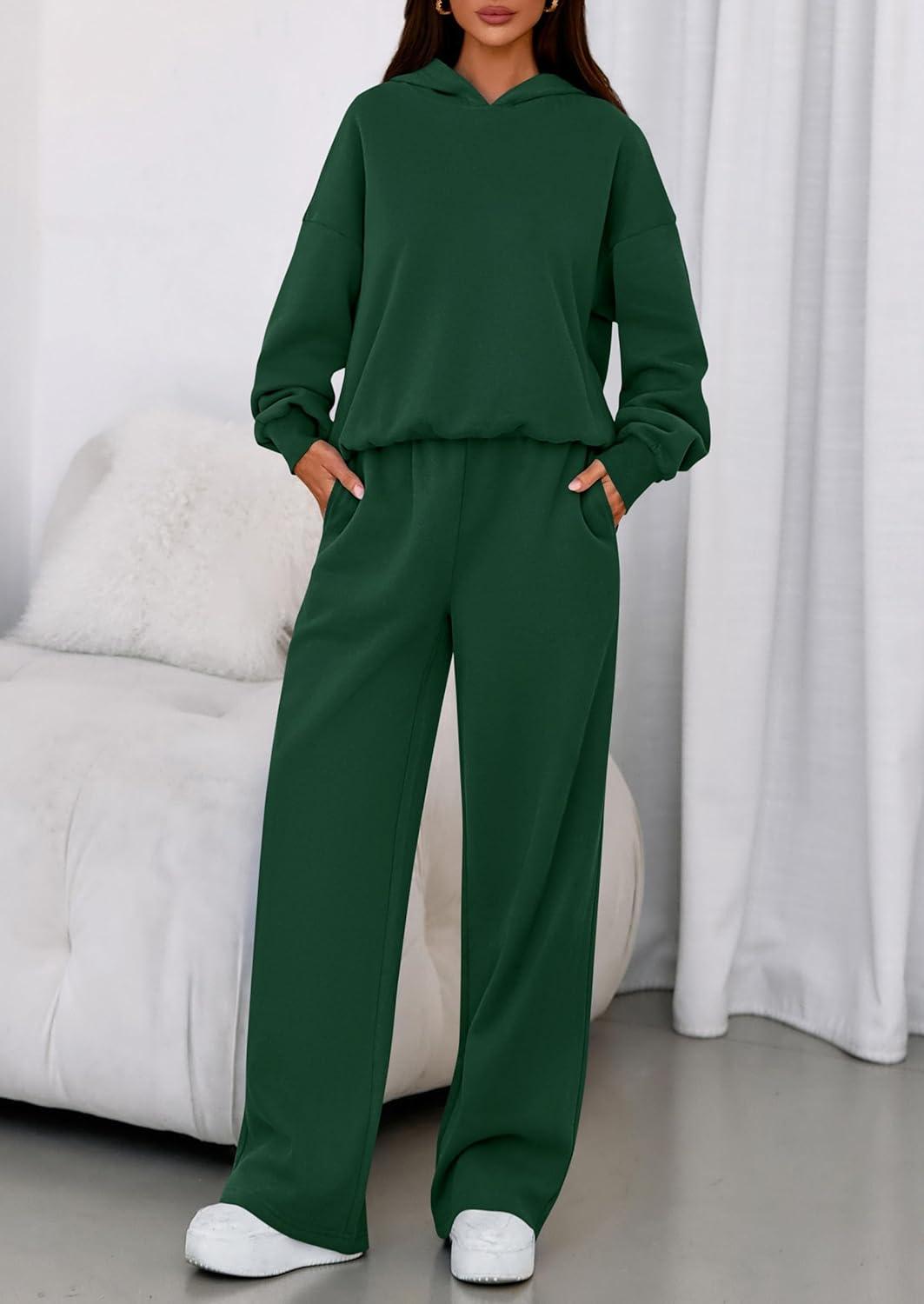 PRETTYGARDEN Womens Sweatsuits 2 Piece Set 2025 Casual Winter Long Sleeve Hoodie Loose Wide Leg Sweatpants Fall Tracksuit(Dark Green)