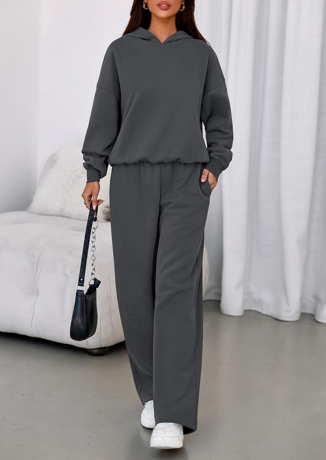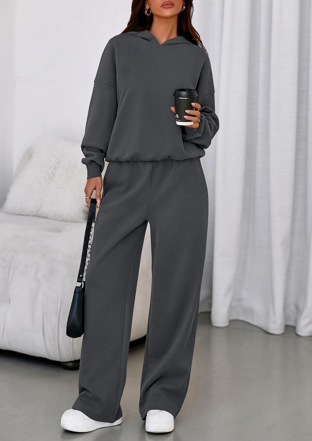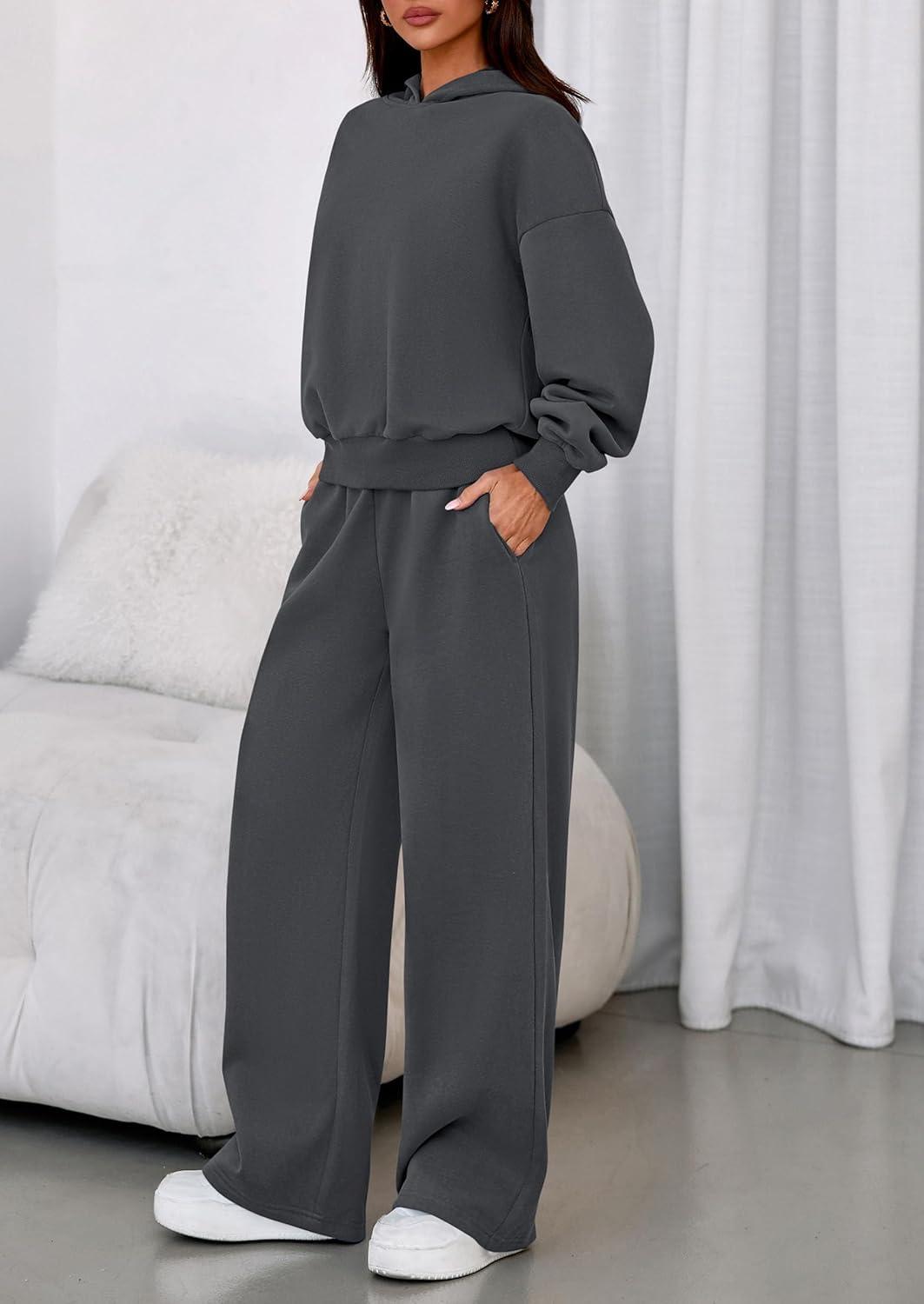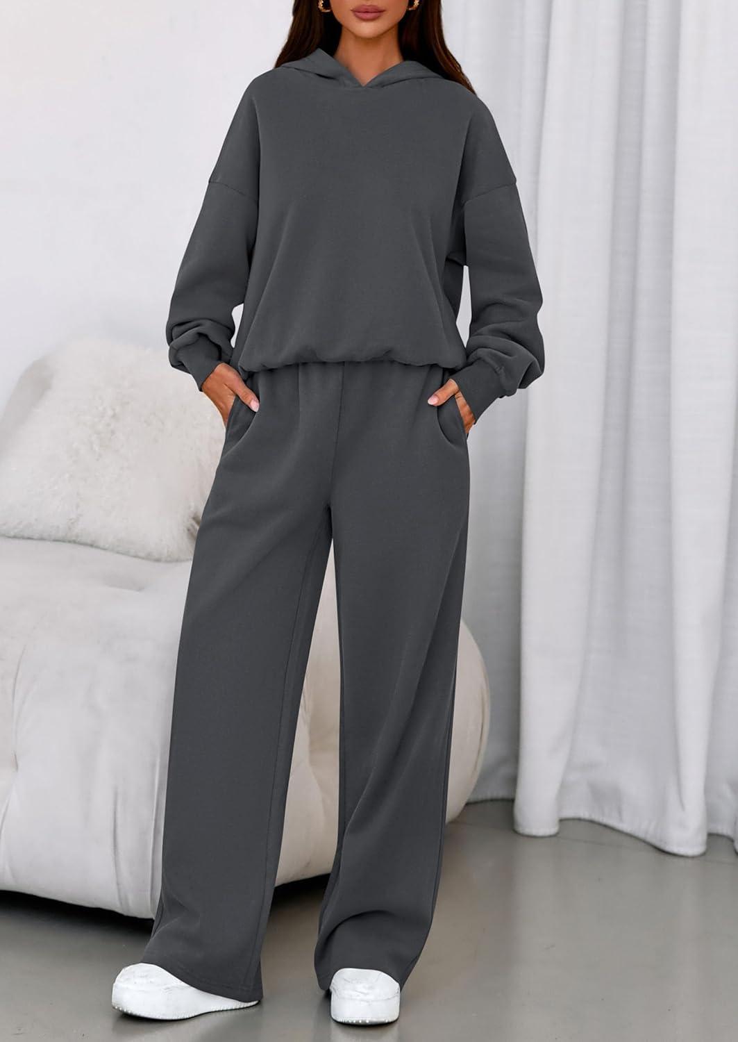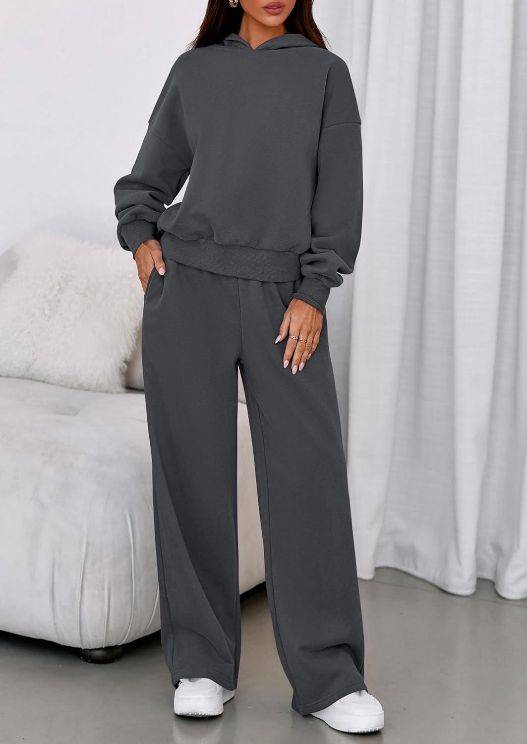 PRETTYGARDEN Womens Sweatsuits 2 Piece Set 2025 Casual Winter Long Sleeve Hoodie Loose Wide Leg Sweatpants Fall Tracksuit(Dark Grey)