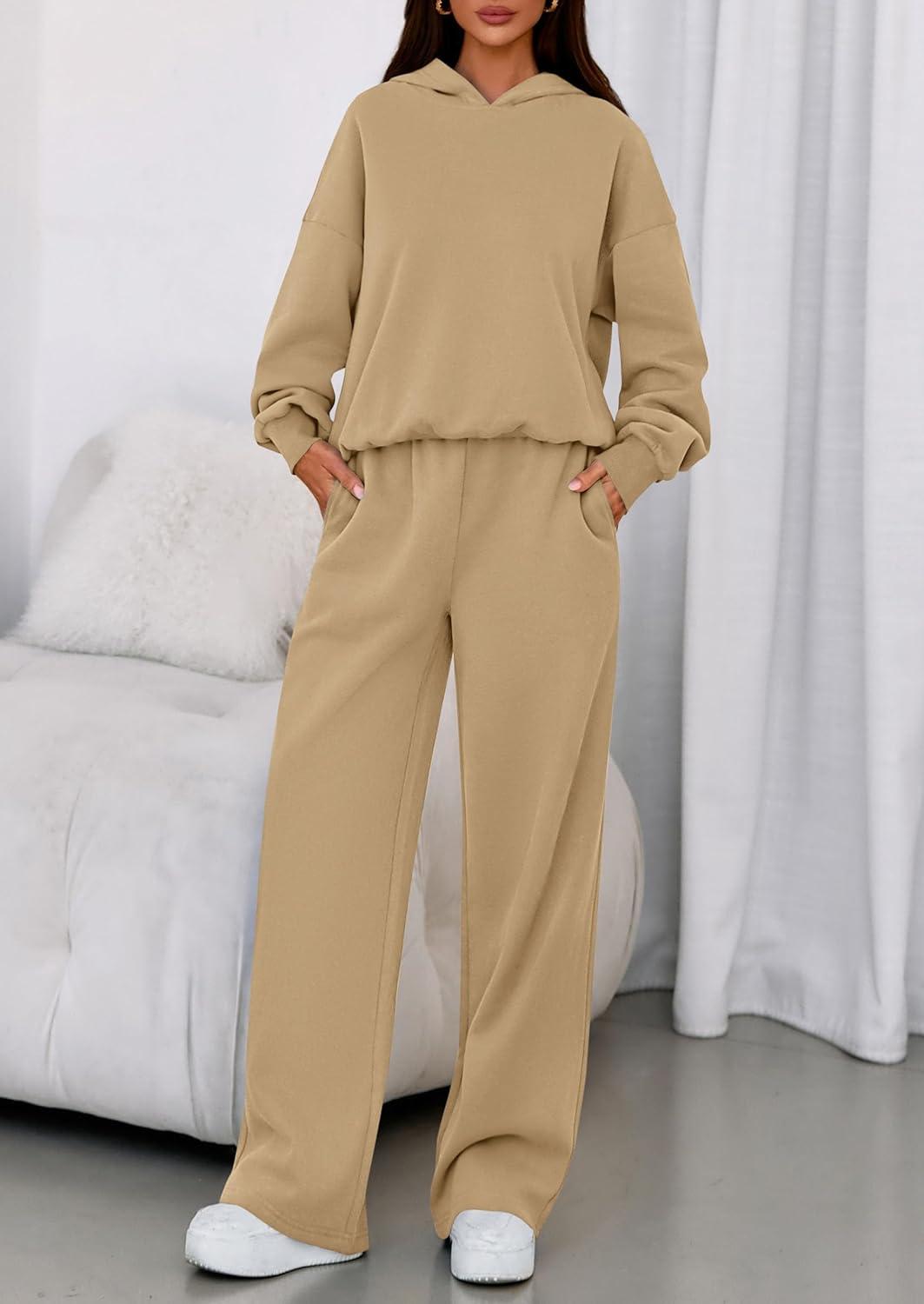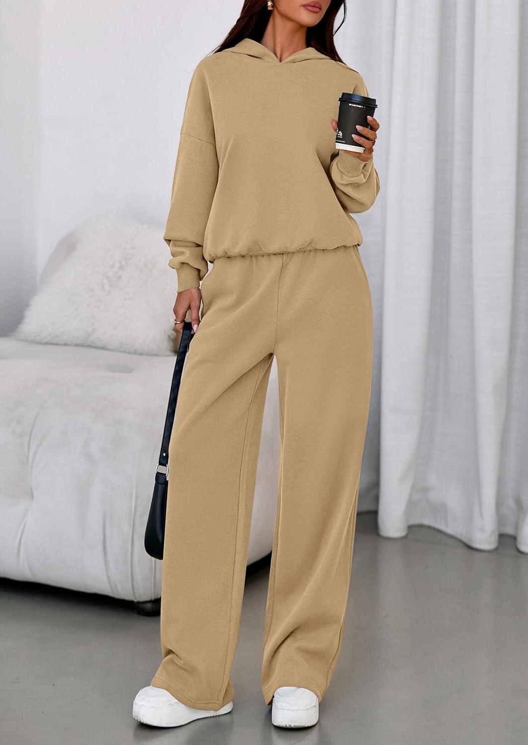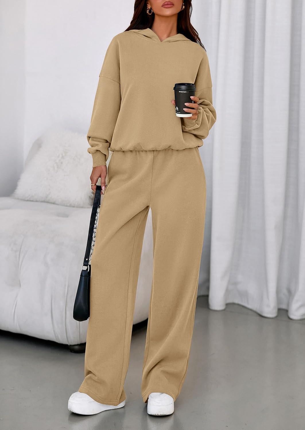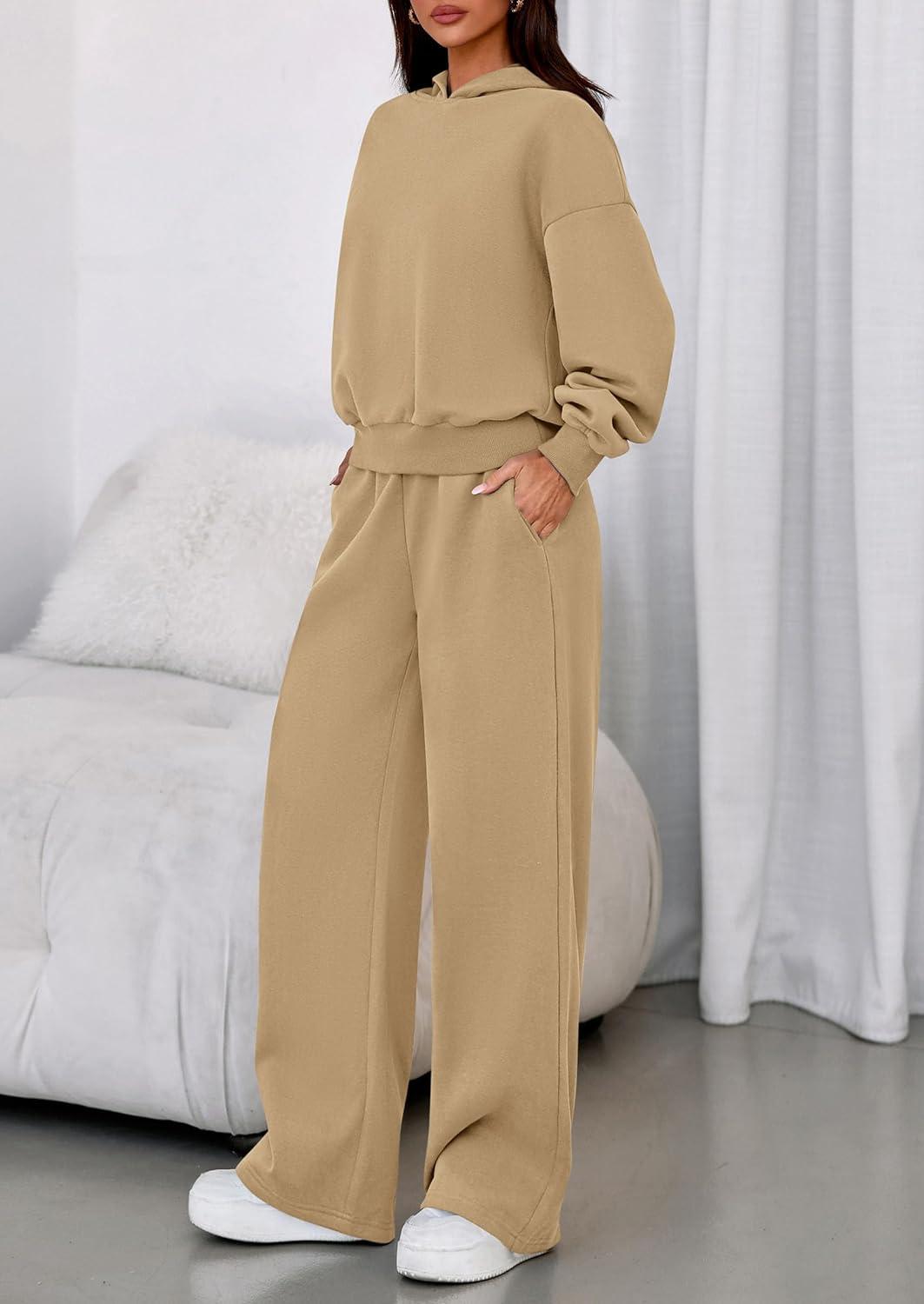 PRETTYGARDEN Womens Sweatsuits 2 Piece Set 2025 Casual Winter Long Sleeve Hoodie Loose Wide Leg Sweatpants Fall Tracksuit(Khaki)