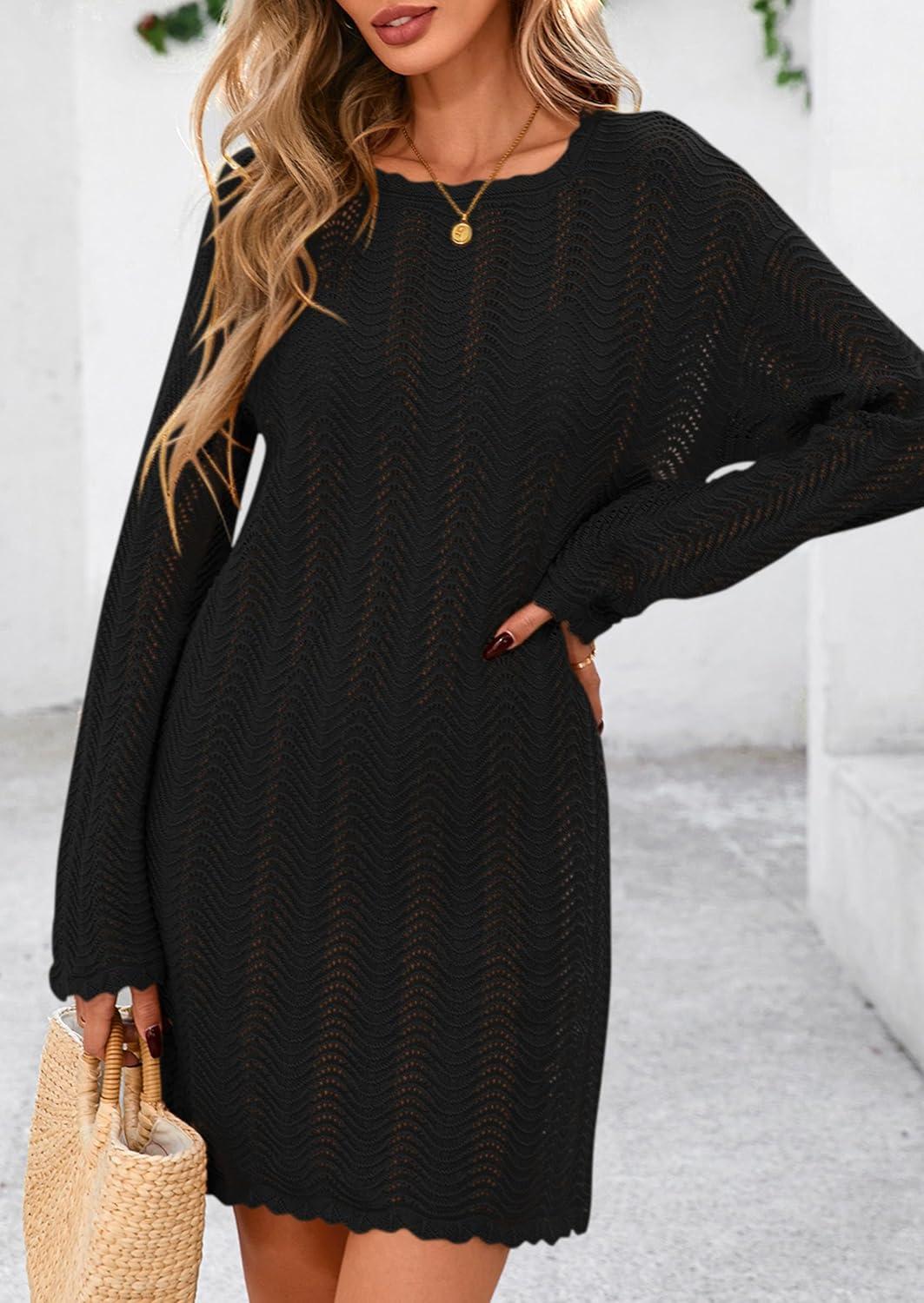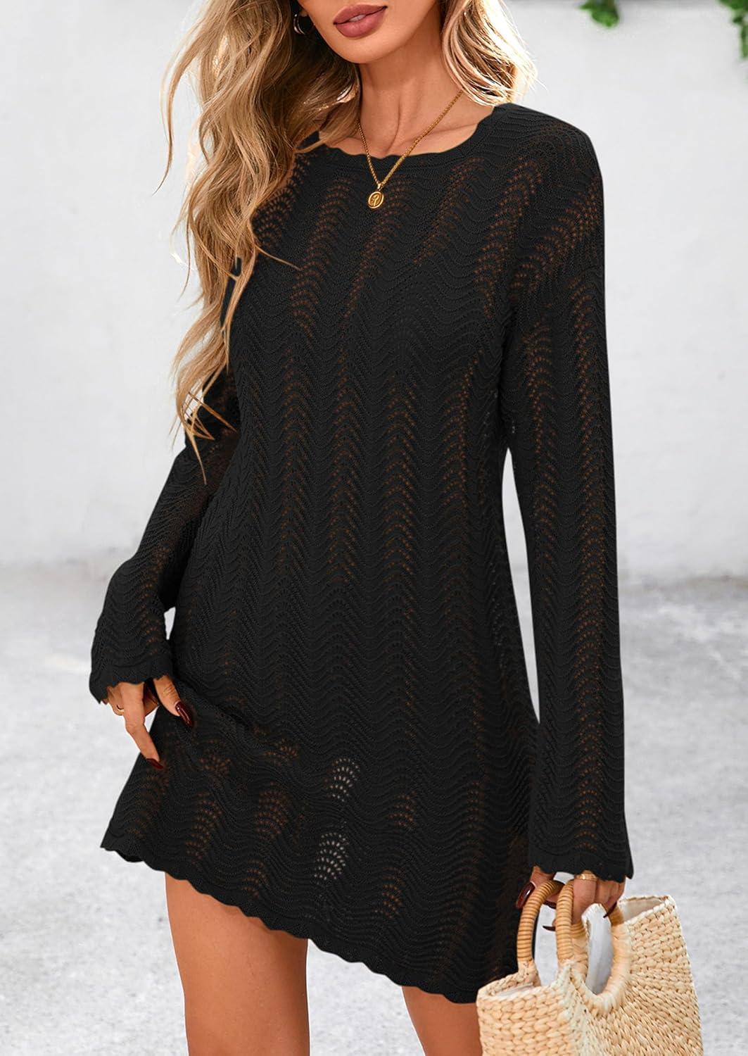 PRETTYGARDEN Women’s Swimsuit Cover Up 2025 Summer Bathing Suit Swimwear Crochet Knit Dress Fashion Beach Vacation Clothes(Black)