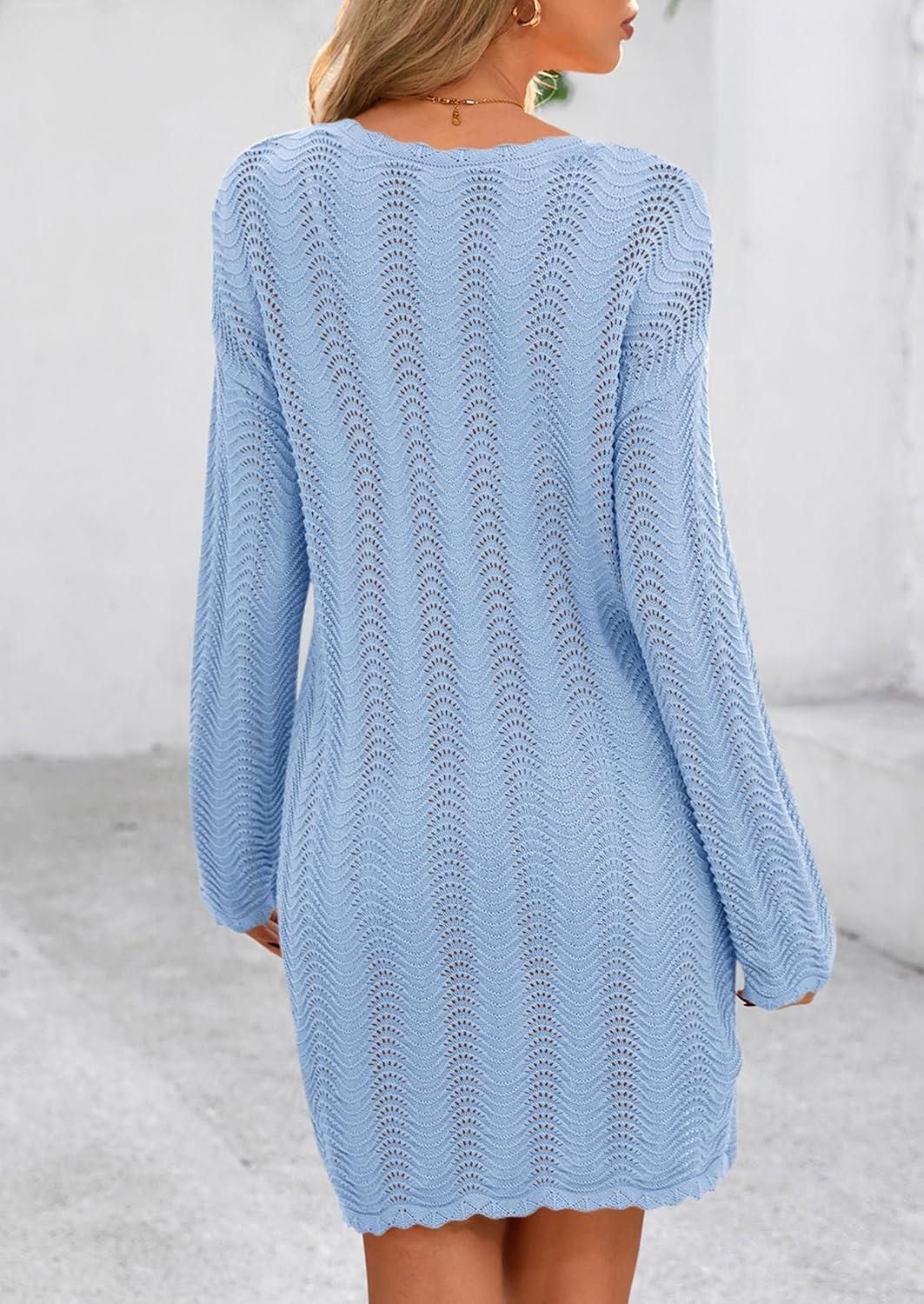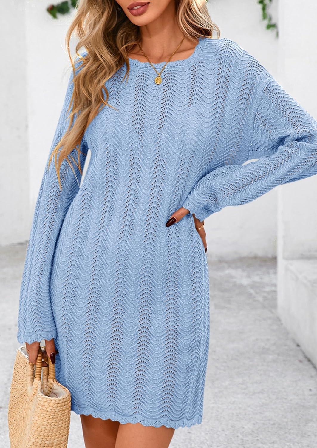 PRETTYGARDEN Women’s Swimsuit Cover Up 2025 Summer Bathing Suit Swimwear Crochet Knit Dress Fashion Beach Vacation Clothes(Blue)