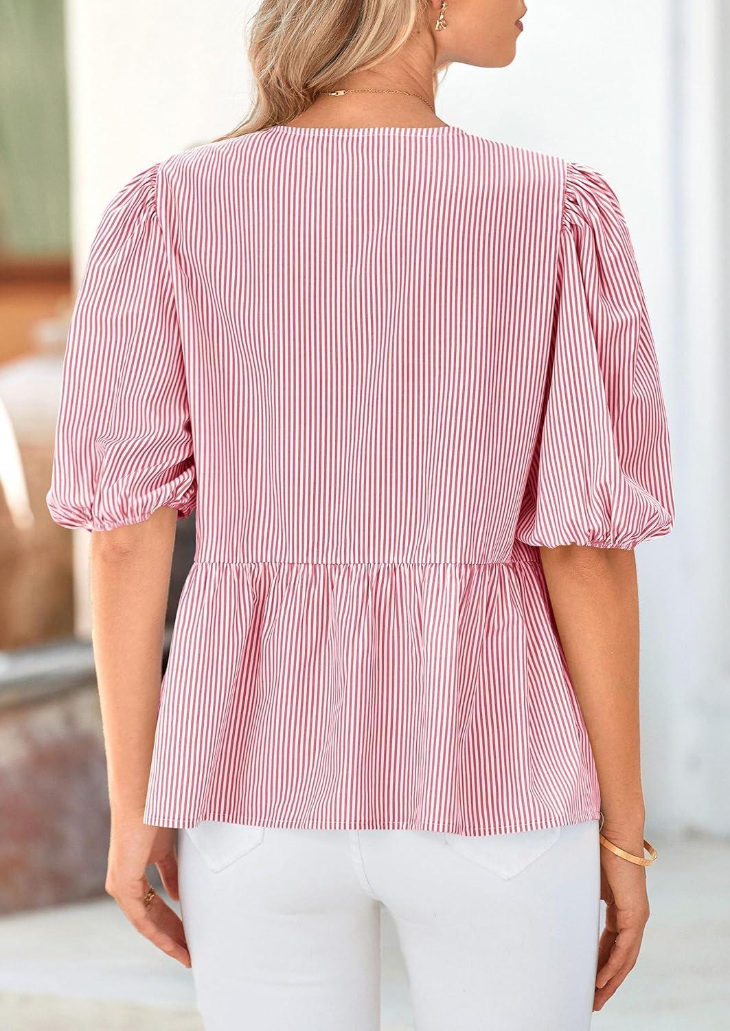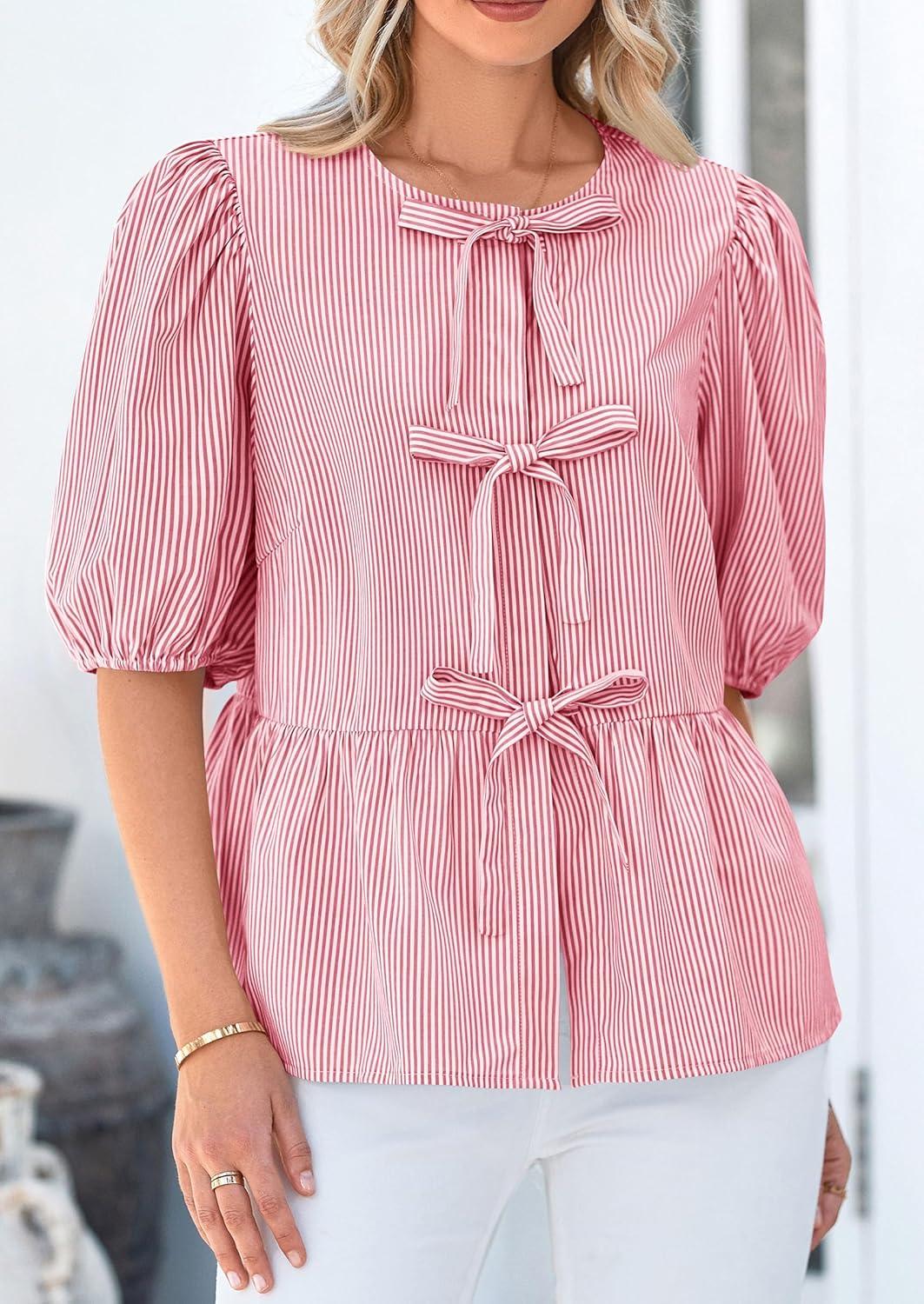 Be the first to review “PRETTYGARDEN Women’s Tie Front Striped Shirt 2025 Summer Trendy Fashion Cute Babydoll Tops Peplum Puffy Sleeve Blouse(Red)”