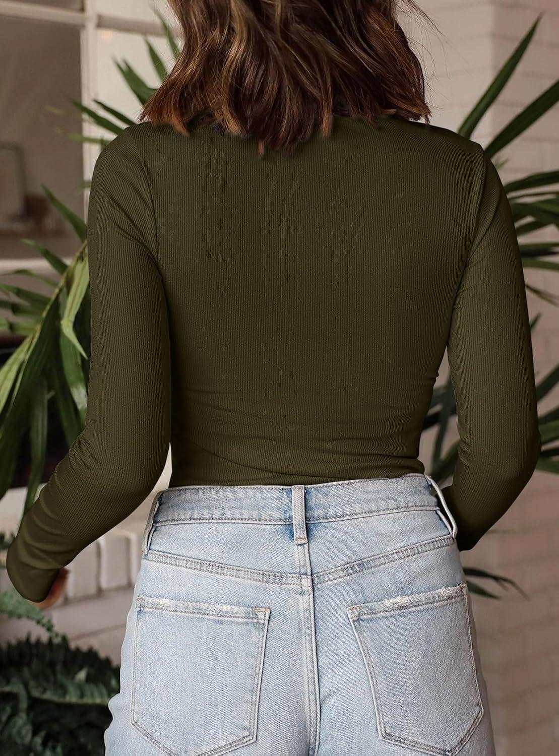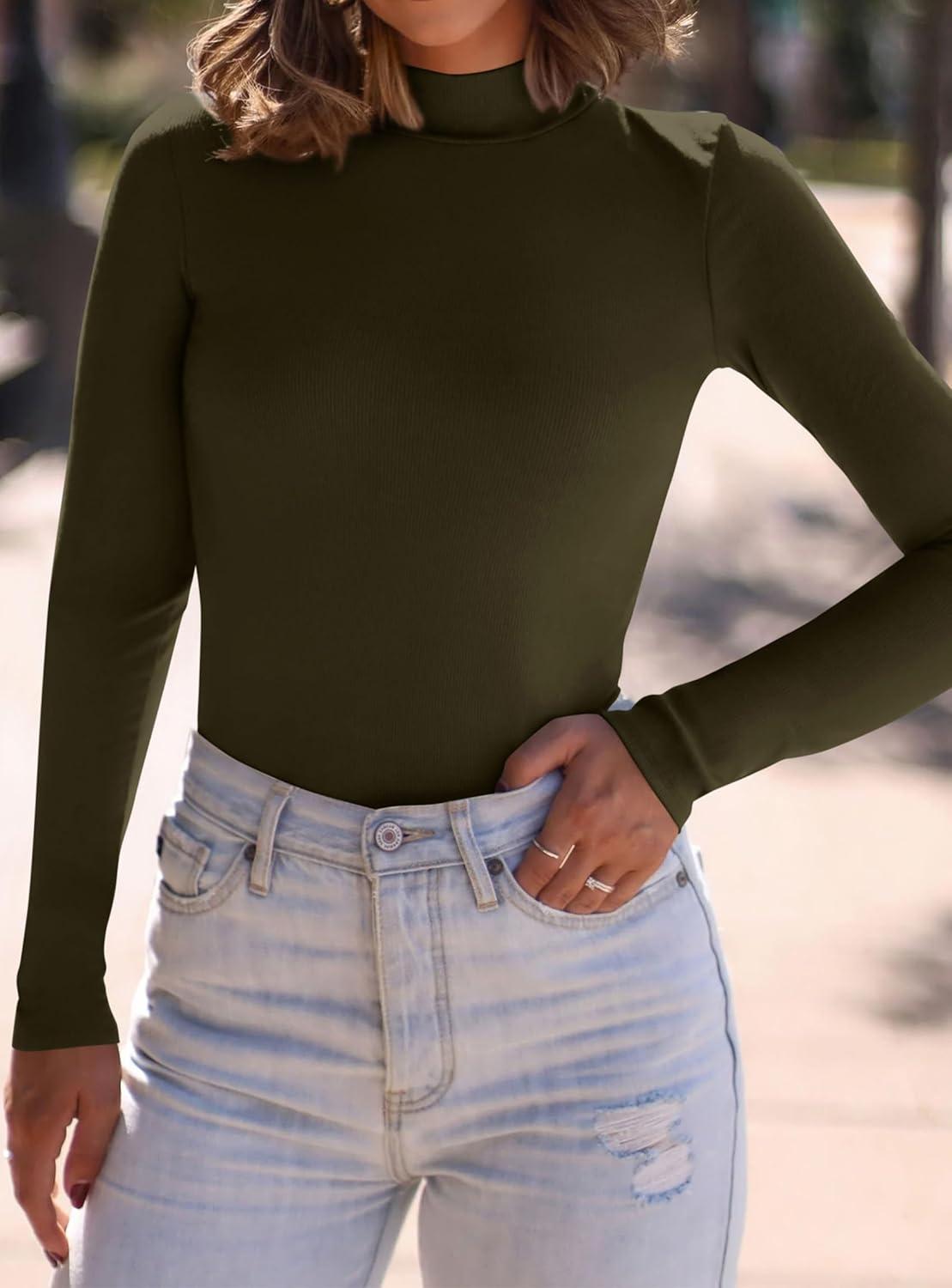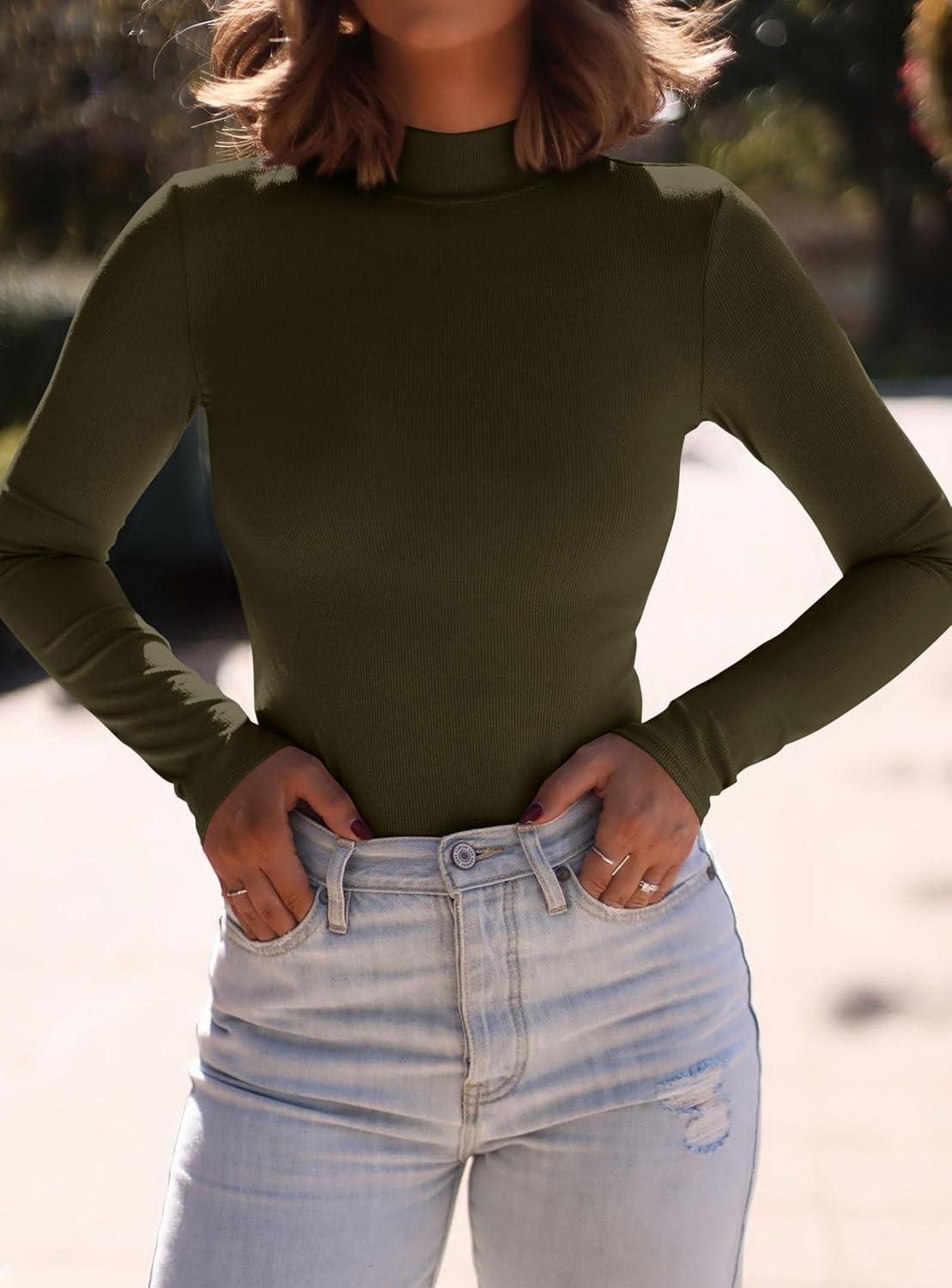 PRETTYGARDEN Women’s Turtleneck Long Sleeve Shirts 2025 Fall Basic Tees Ribbed Fitted Tops Thermal Layering Knit Top Clothes(Army Green)