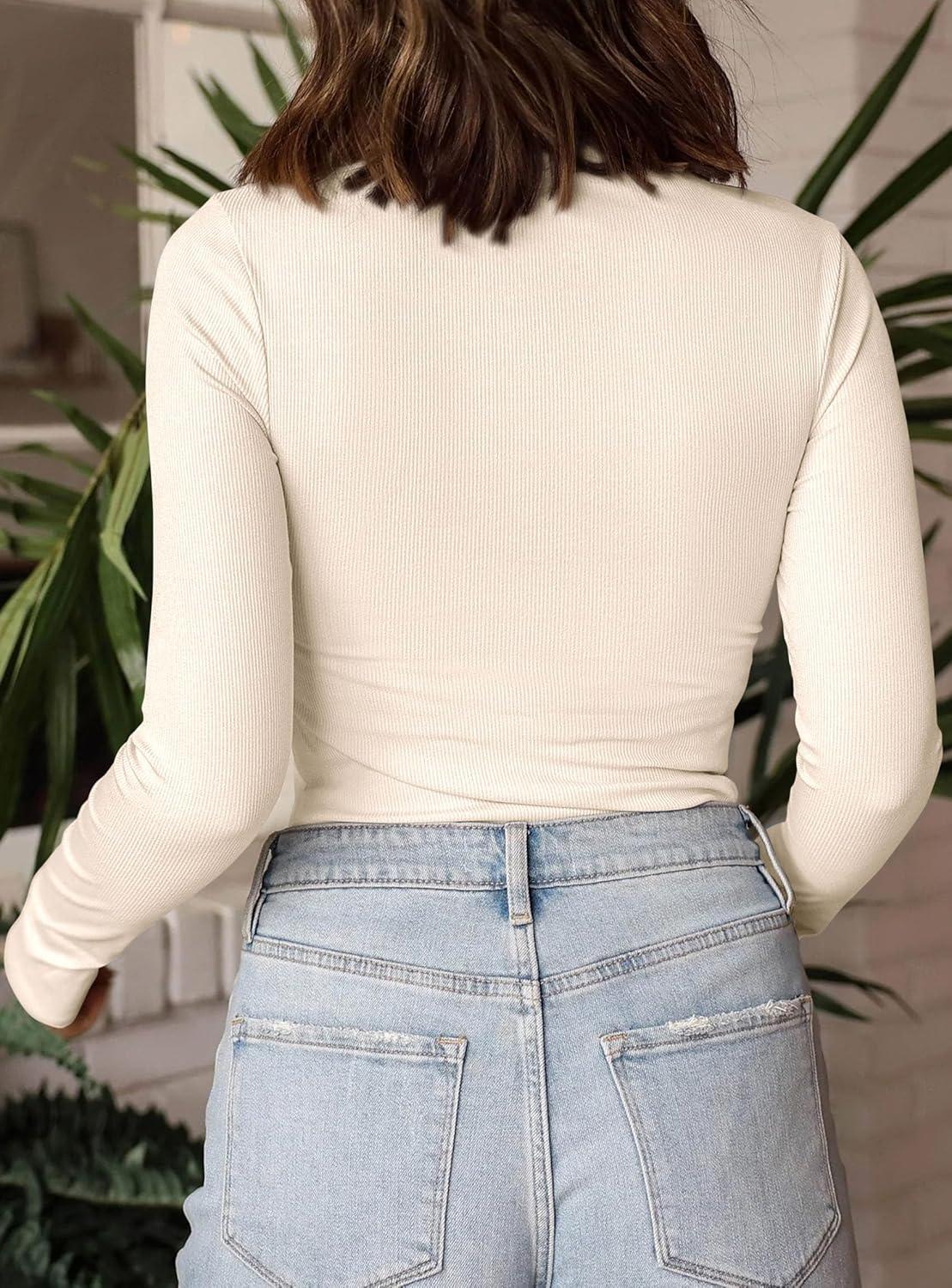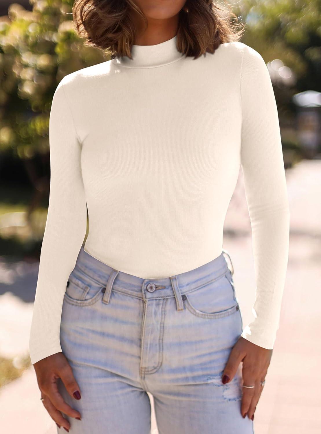 PRETTYGARDEN Women’s Turtleneck Long Sleeve Shirts 2025 Fall Basic Tees Ribbed Fitted Tops Thermal Layering Knit Top Clothes(Beige)