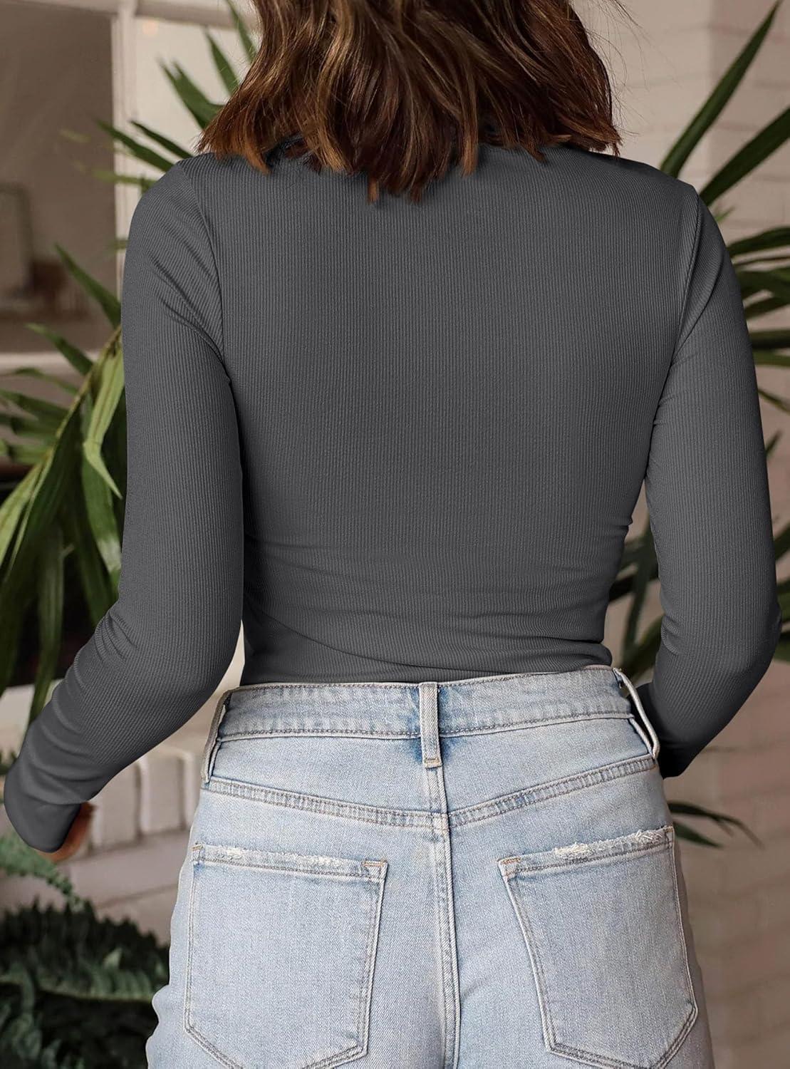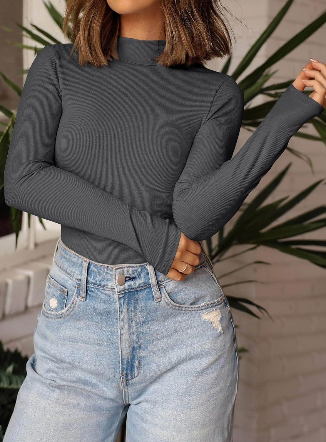 PRETTYGARDEN Women’s Turtleneck Long Sleeve Shirts 2025 Fall Basic Tees Ribbed Fitted Tops Thermal Layering Knit Top Clothes(Dark Grey)