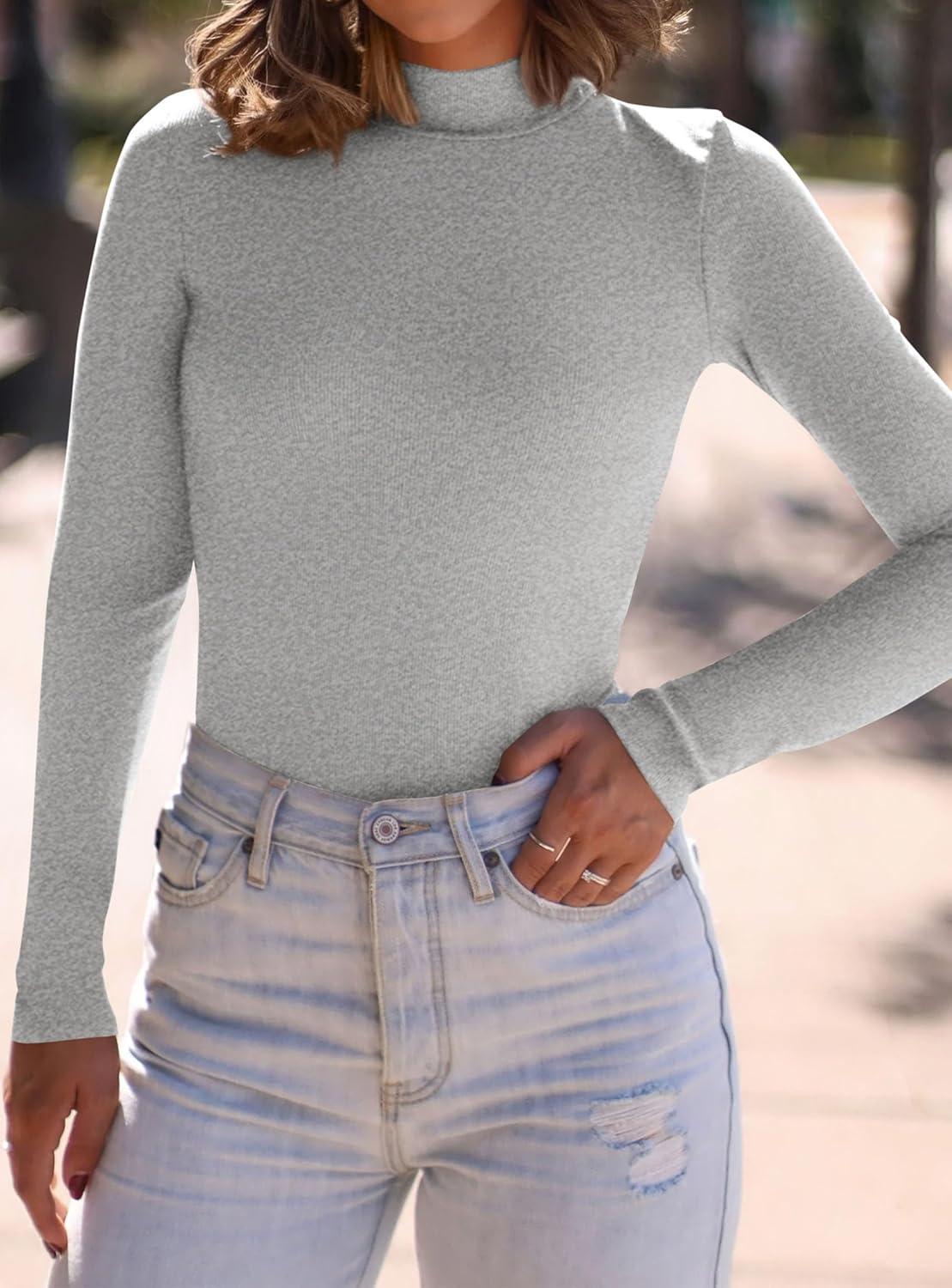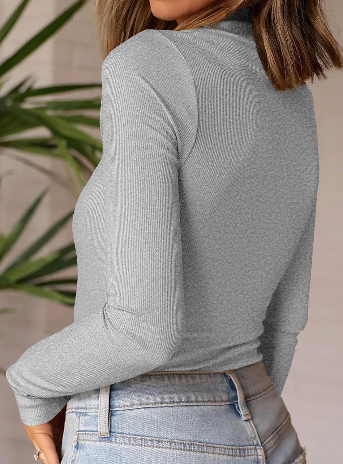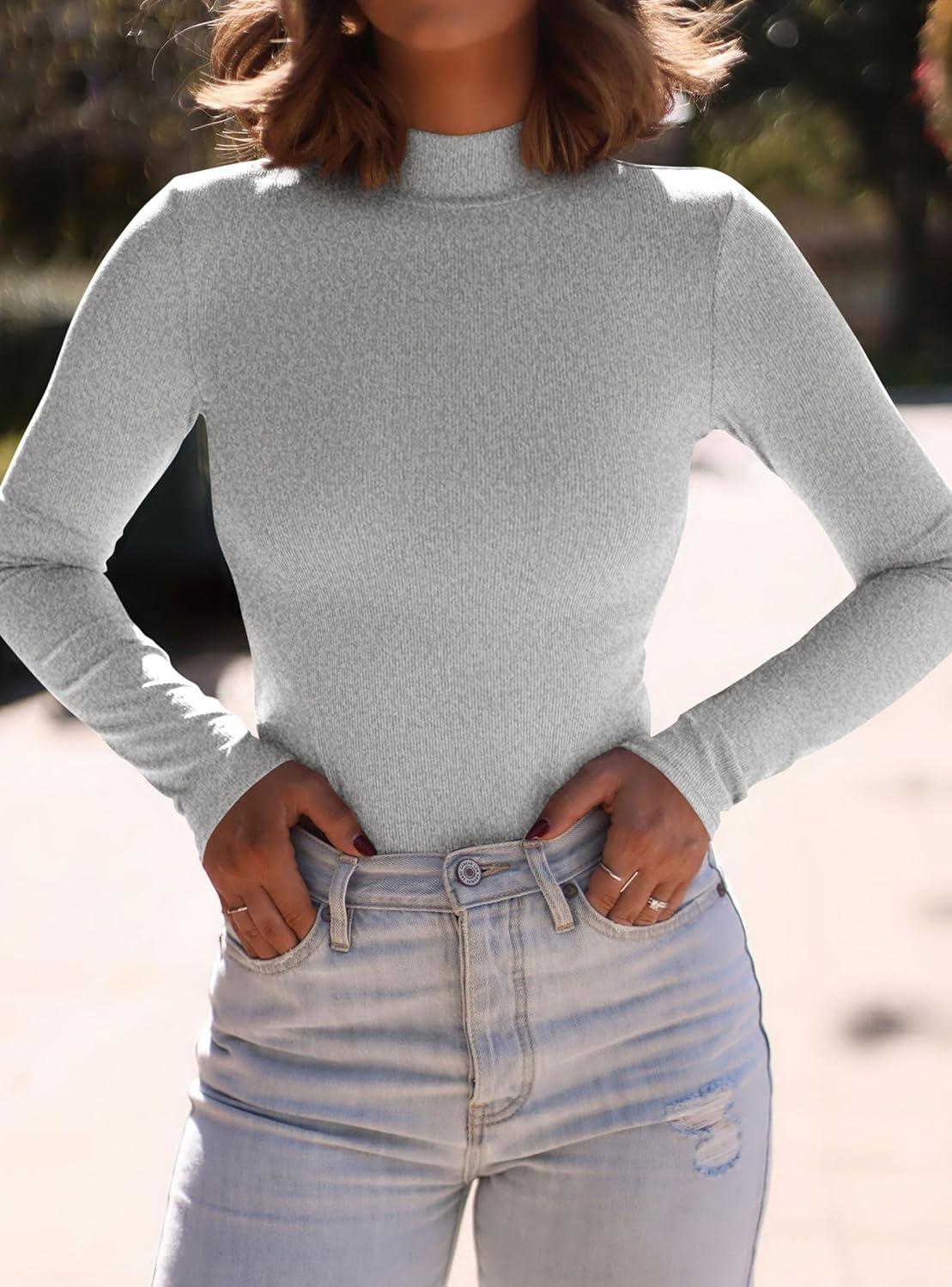 PRETTYGARDEN Women’s Turtleneck Long Sleeve Shirts 2025 Fall Basic Tees Ribbed Fitted Tops Thermal Layering Knit Top Clothes(Grey)