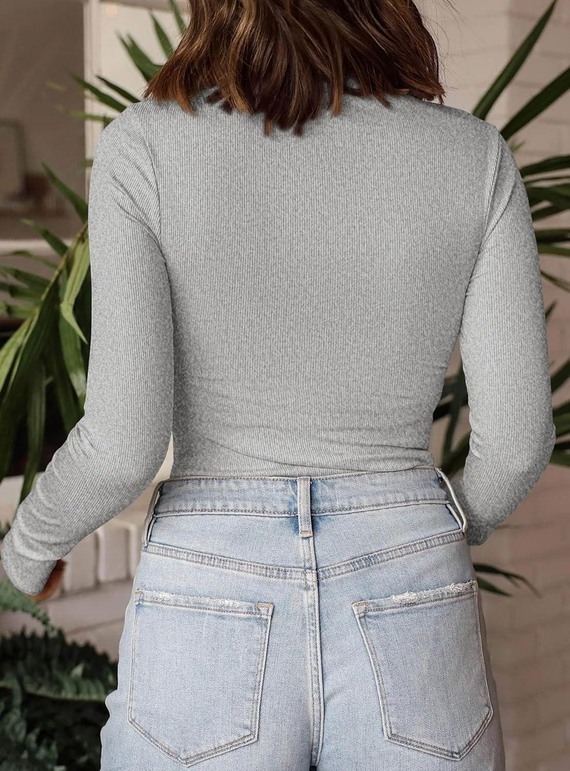 PRETTYGARDEN Women's Turtleneck Long Sleeve Shirts 2025 Fall Basic Tees Ribbed Fitted Tops Thermal Layering Knit Top Clothes(Grey)