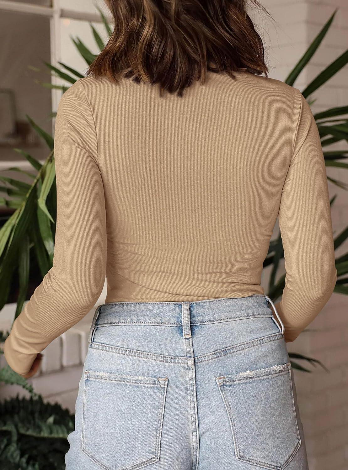 PRETTYGARDEN Women's Turtleneck Long Sleeve Shirts 2025 Fall Basic Tees Ribbed Fitted Tops Thermal Layering Knit Top Clothes(Khaki)