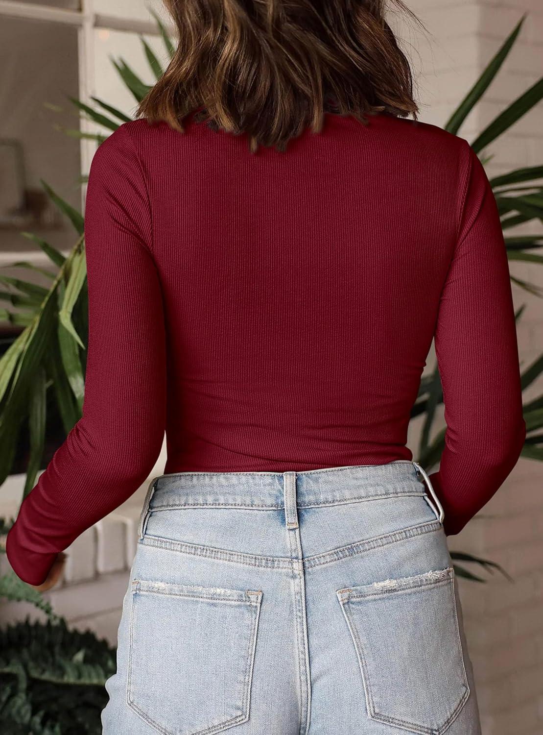 PRETTYGARDEN Women's Turtleneck Long Sleeve Shirts 2025 Fall Basic Tees Ribbed Fitted Tops Thermal Layering Knit Top Clothes(Wine Red)