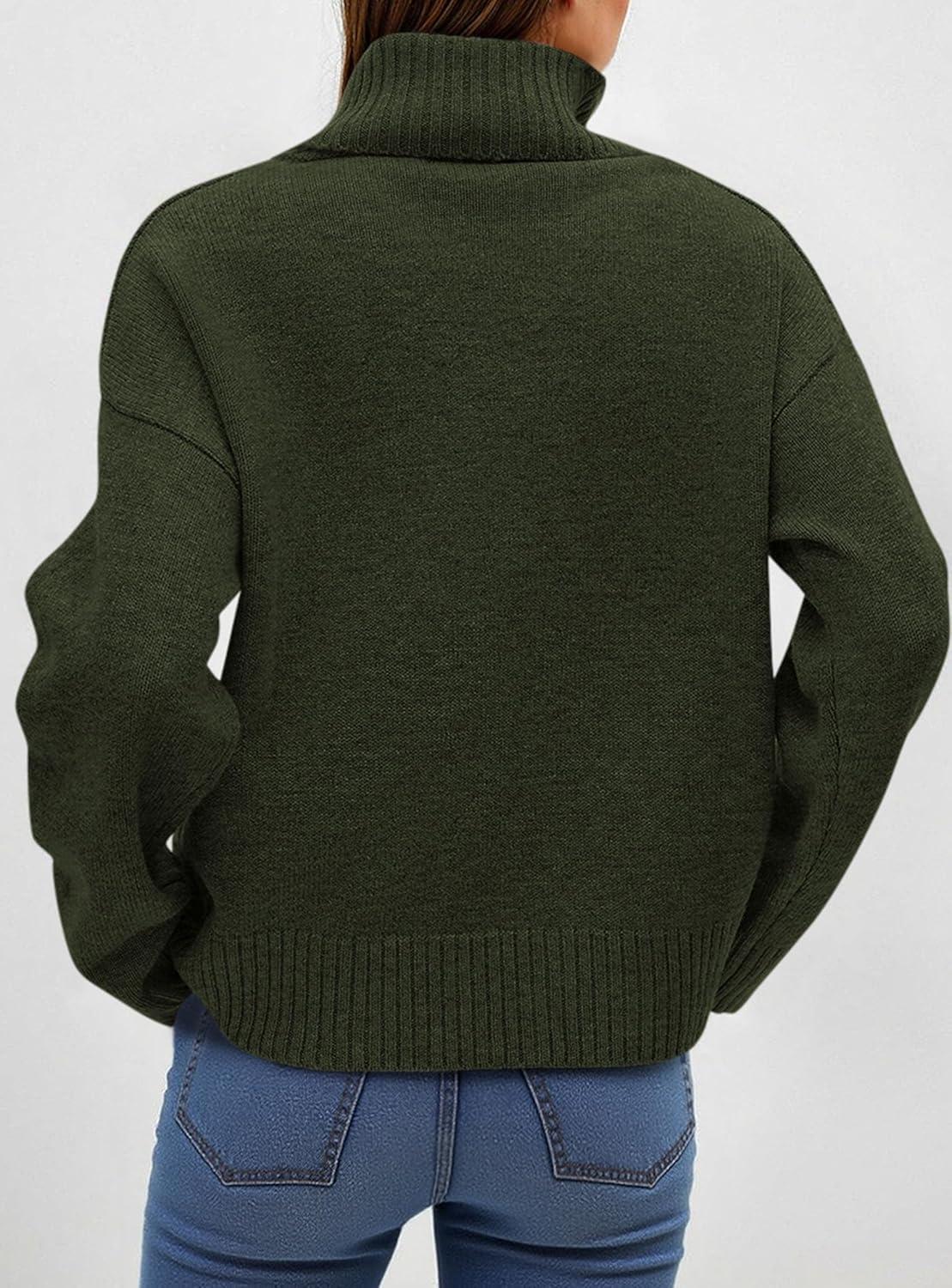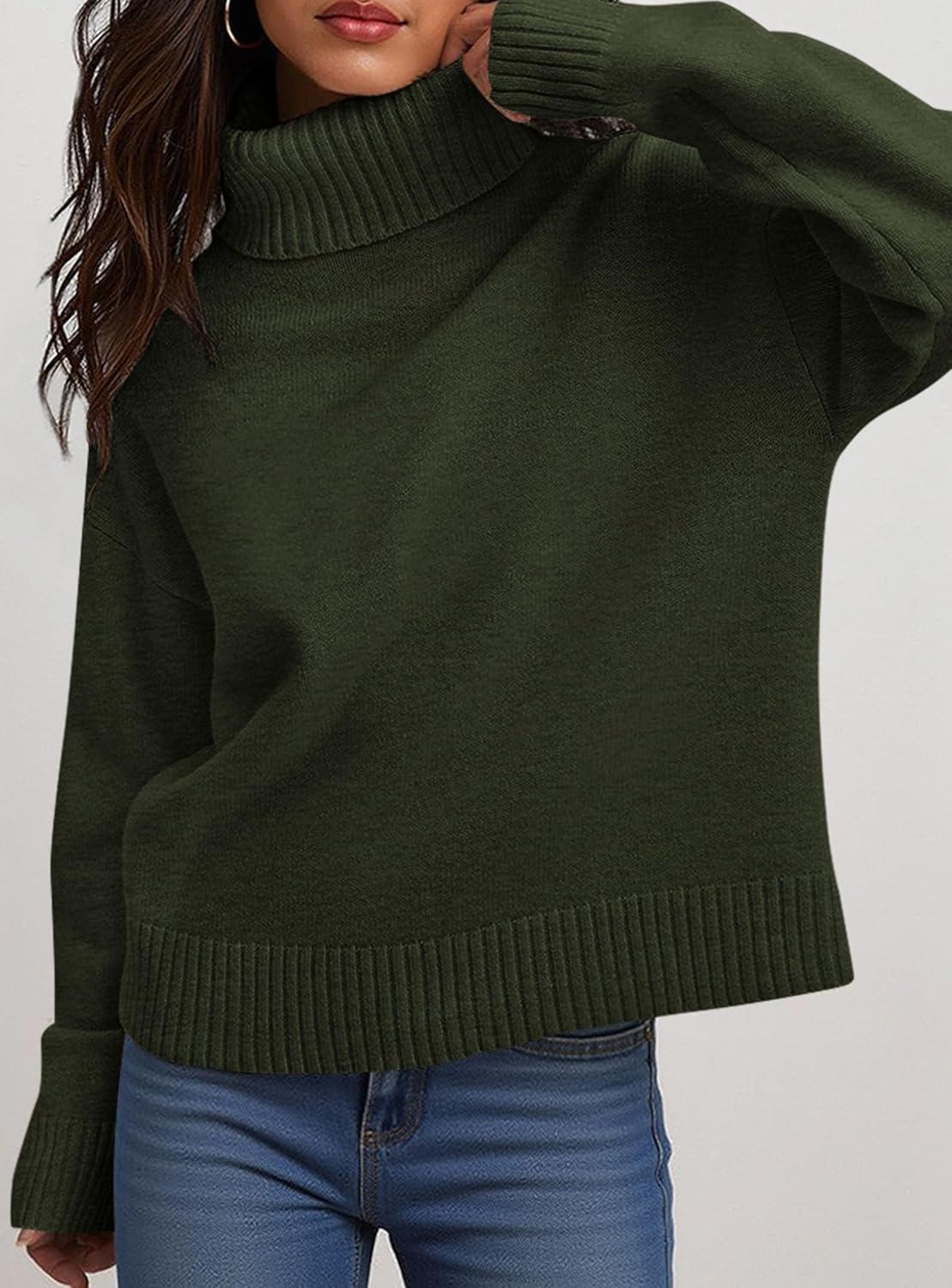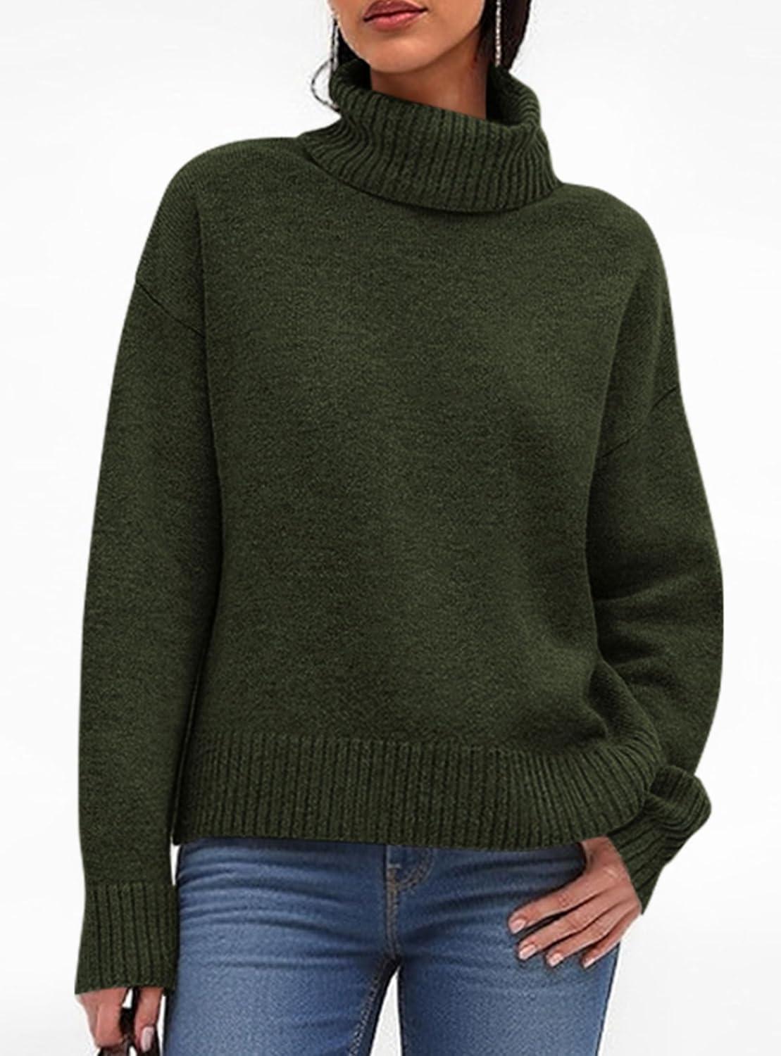 PRETTYGARDEN Womens Turtleneck Long Sleeve Sweater 2025 Fall Trendy Loose Fit Casual Tops Chunky Knit Pullover Sweaters(Army Green)