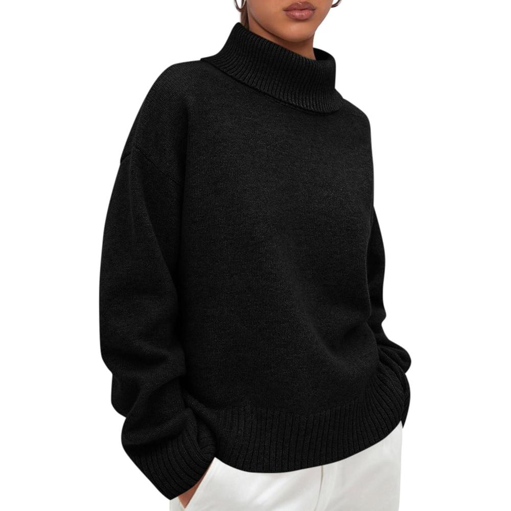 PRETTYGARDEN Womens Turtleneck Long Sleeve Sweater 2025 Fall Trendy Loose Fit Casual Tops Chunky Knit Pullover Sweaters(Black)
