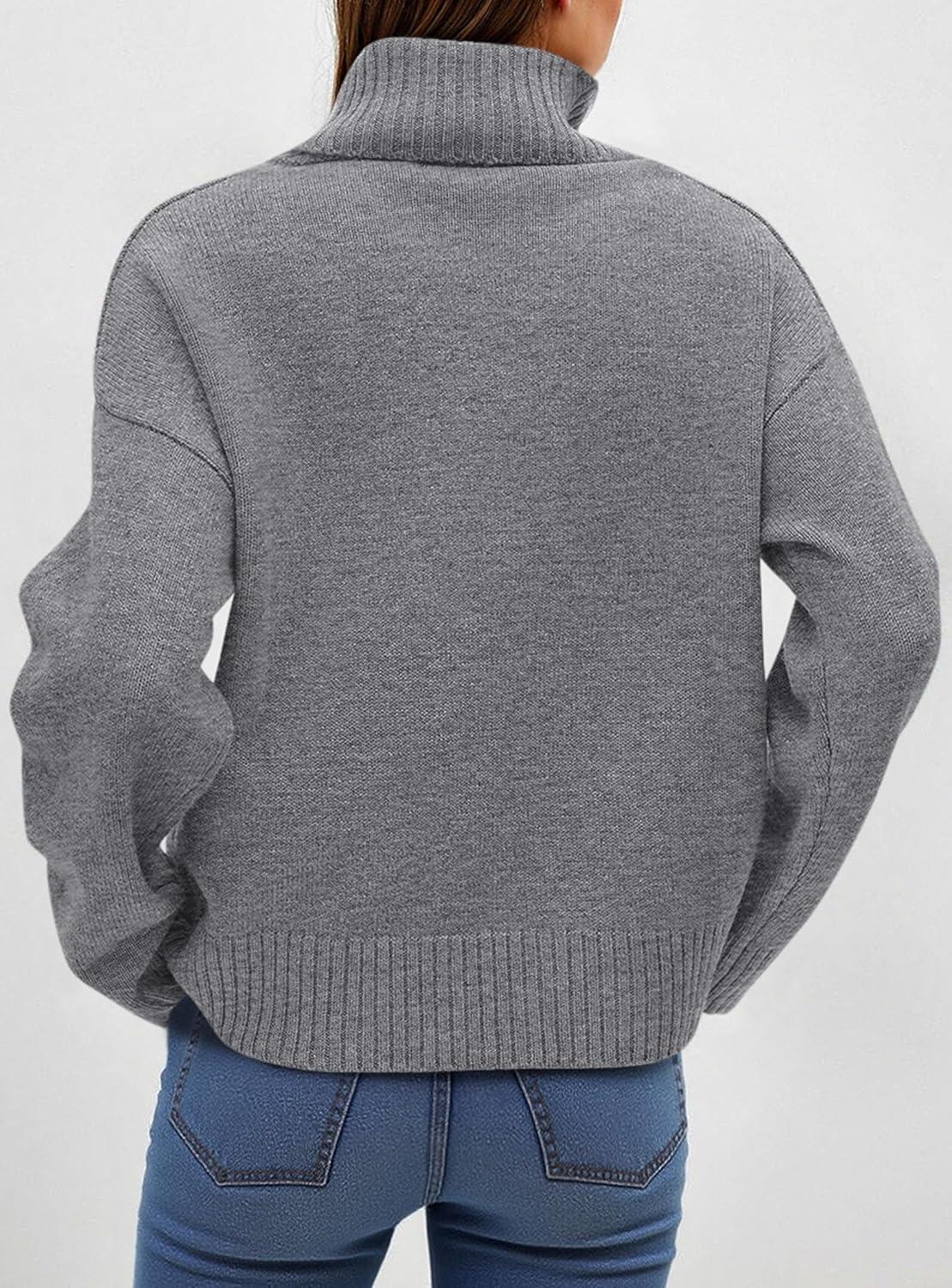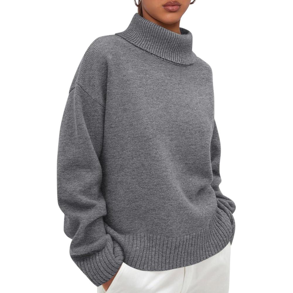 PRETTYGARDEN Womens Turtleneck Long Sleeve Sweater 2025 Fall Trendy Loose Fit Casual Tops Chunky Knit Pullover Sweaters(Grey)