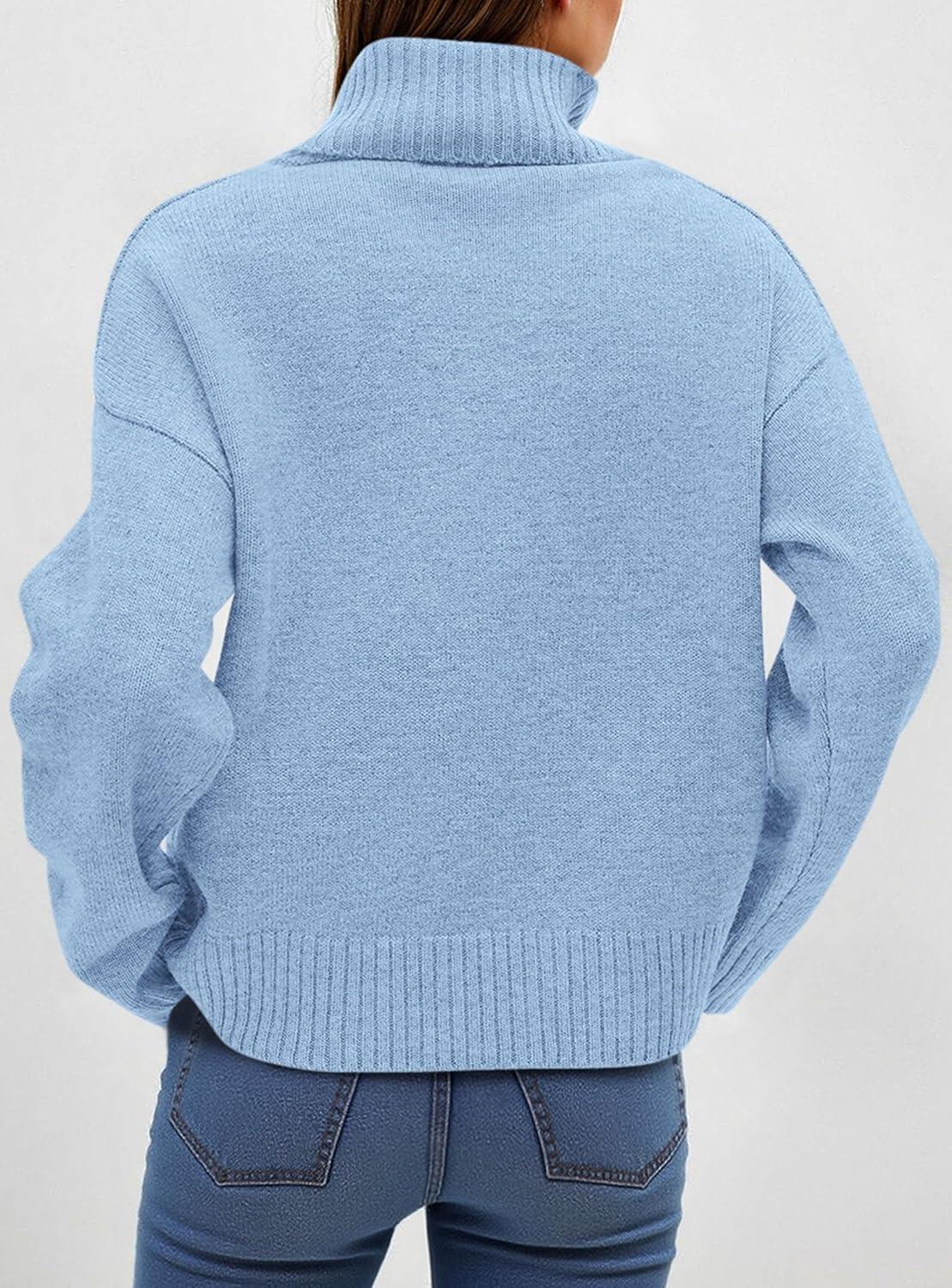 PRETTYGARDEN Womens Turtleneck Long Sleeve Sweater 2025 Fall Trendy Loose Fit Casual Tops Chunky Knit Pullover Sweaters(Light Blue)