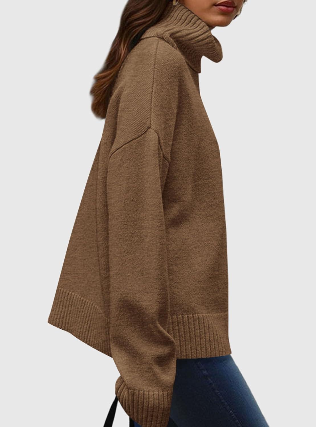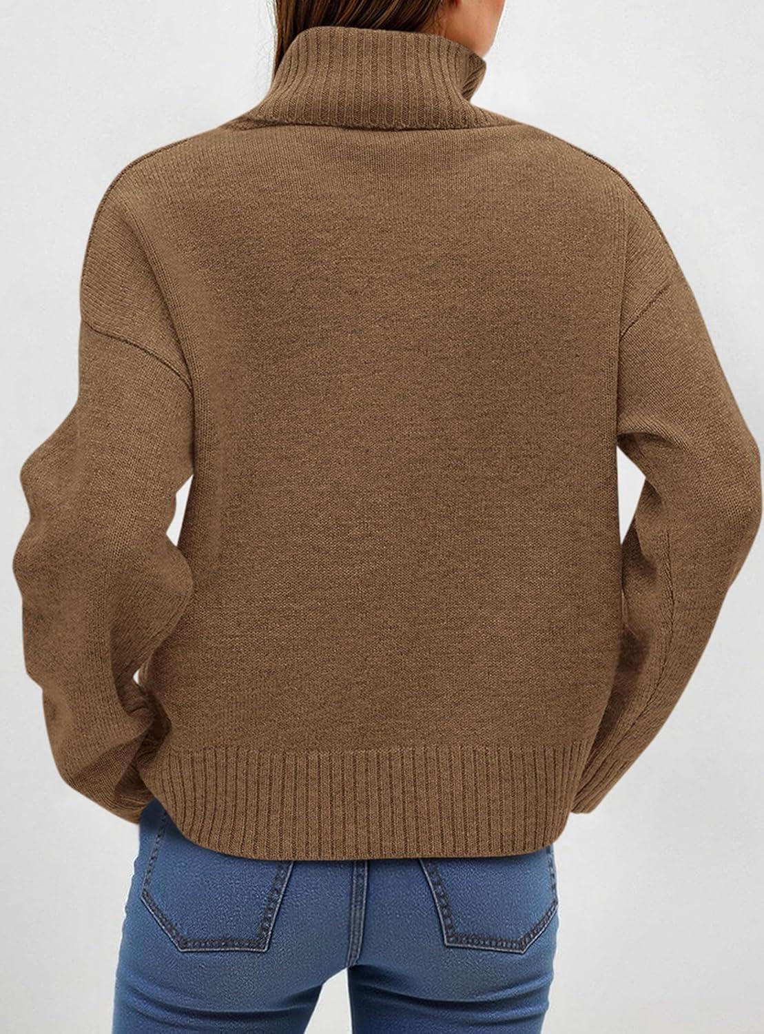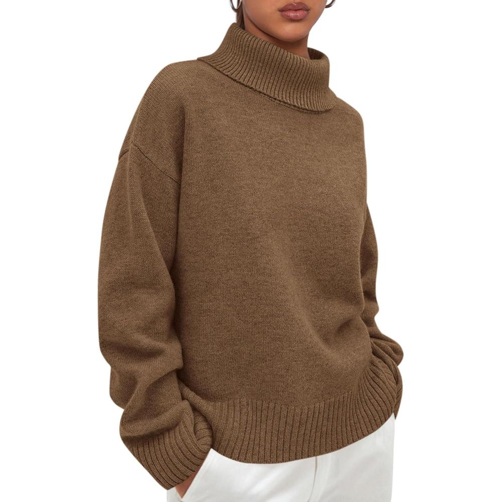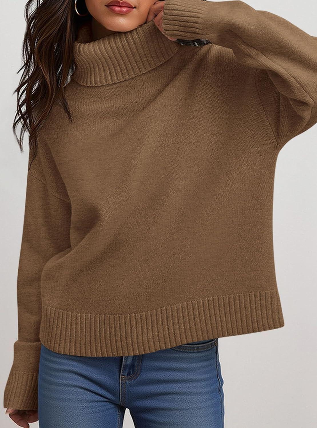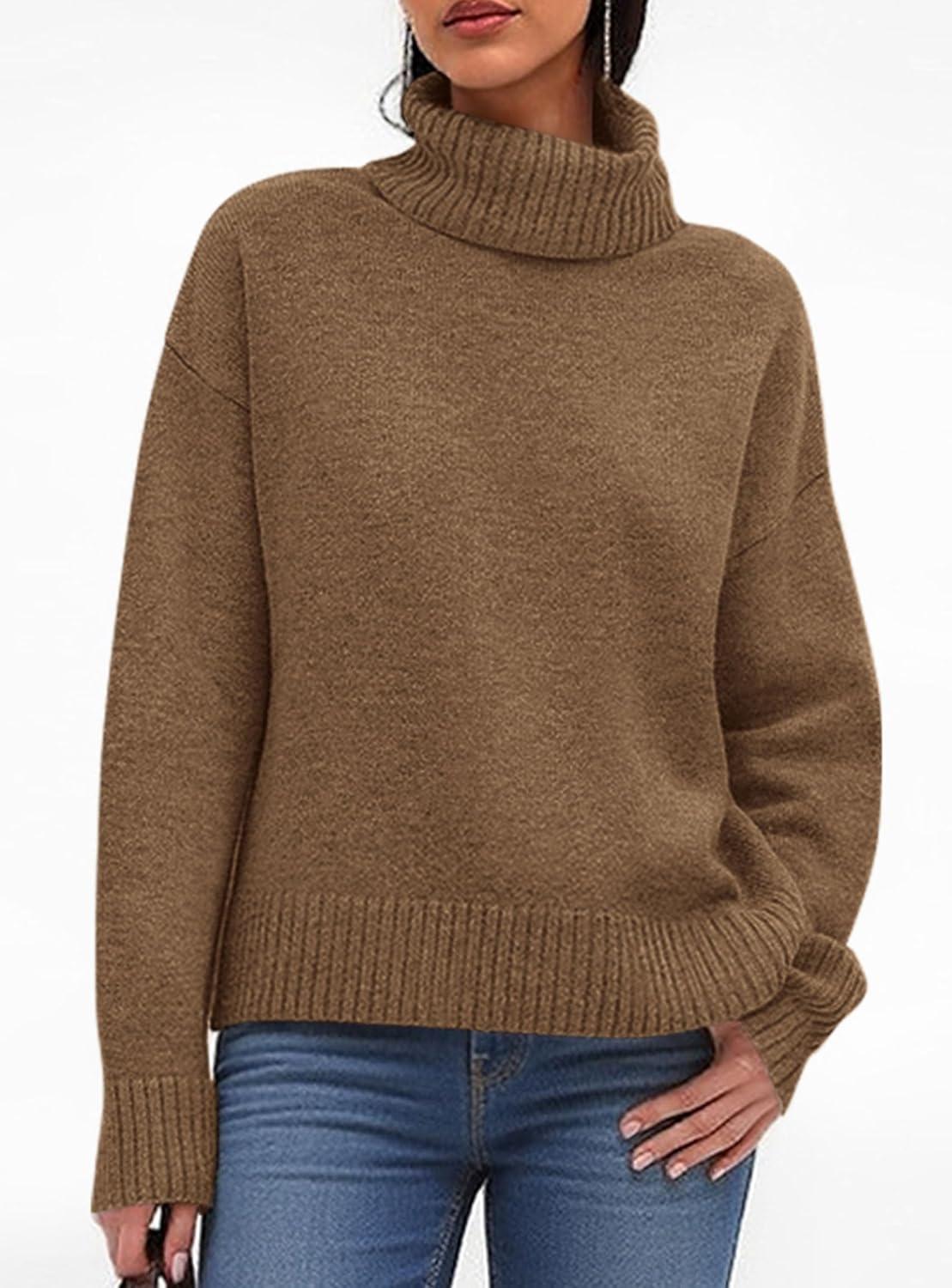 PRETTYGARDEN Womens Turtleneck Long Sleeve Sweater 2025 Fall Trendy Loose Fit Casual Tops Chunky Knit Pullover Sweaters(Light Brown)