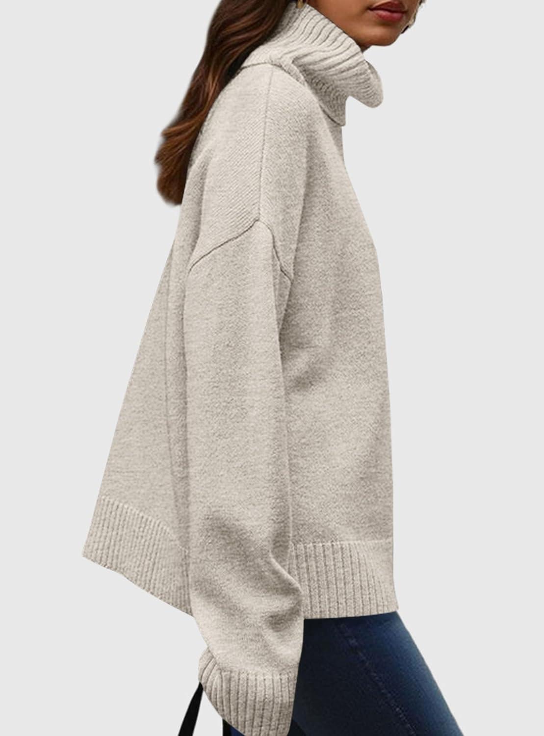 imagePRETTYGARDEN Womens Turtleneck Long Sleeve Sweater 2025 Fall Trendy Loose Fit Casual Tops Chunky Knit Pullover SweatersLight Grey