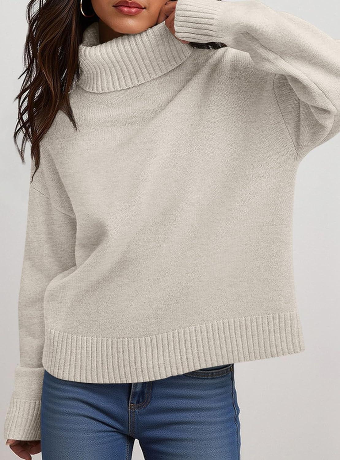PRETTYGARDEN Womens Turtleneck Long Sleeve Sweater 2025 Fall Trendy Loose Fit Casual Tops Chunky Knit Pullover Sweaters(Light Grey)