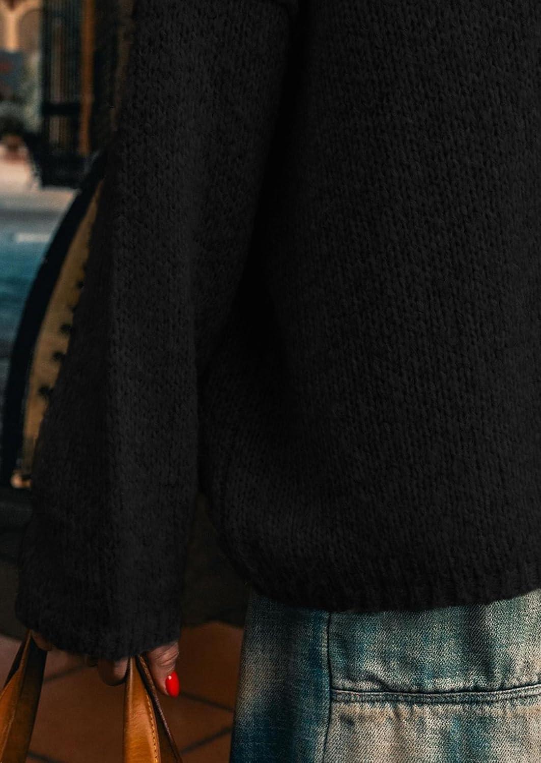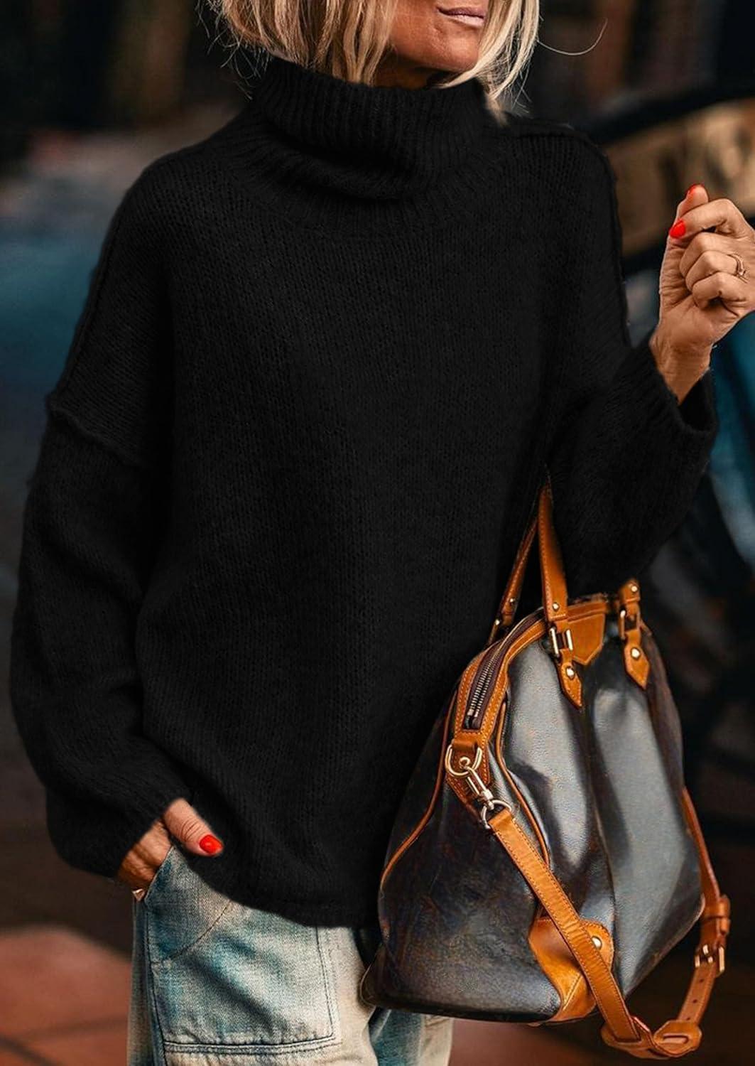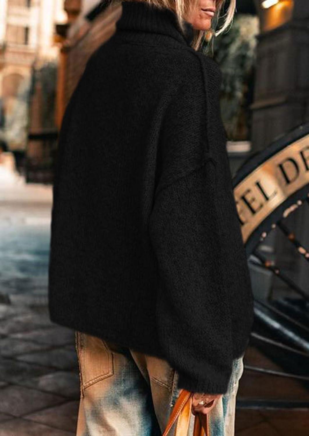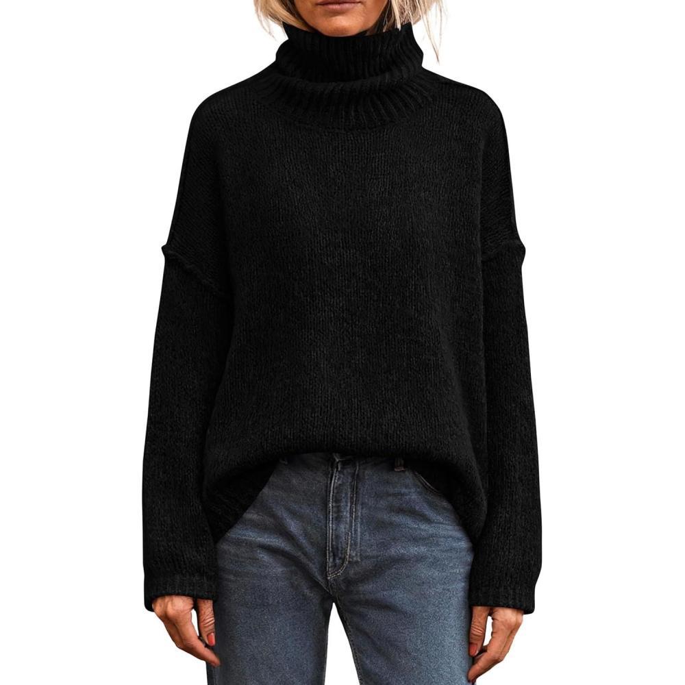 PRETTYGARDEN Womens Turtleneck Long Sleeve Sweater 2025 Fall Trendy Loose Fit Knit Tops Oversized Pullover Sweaters(Black)
