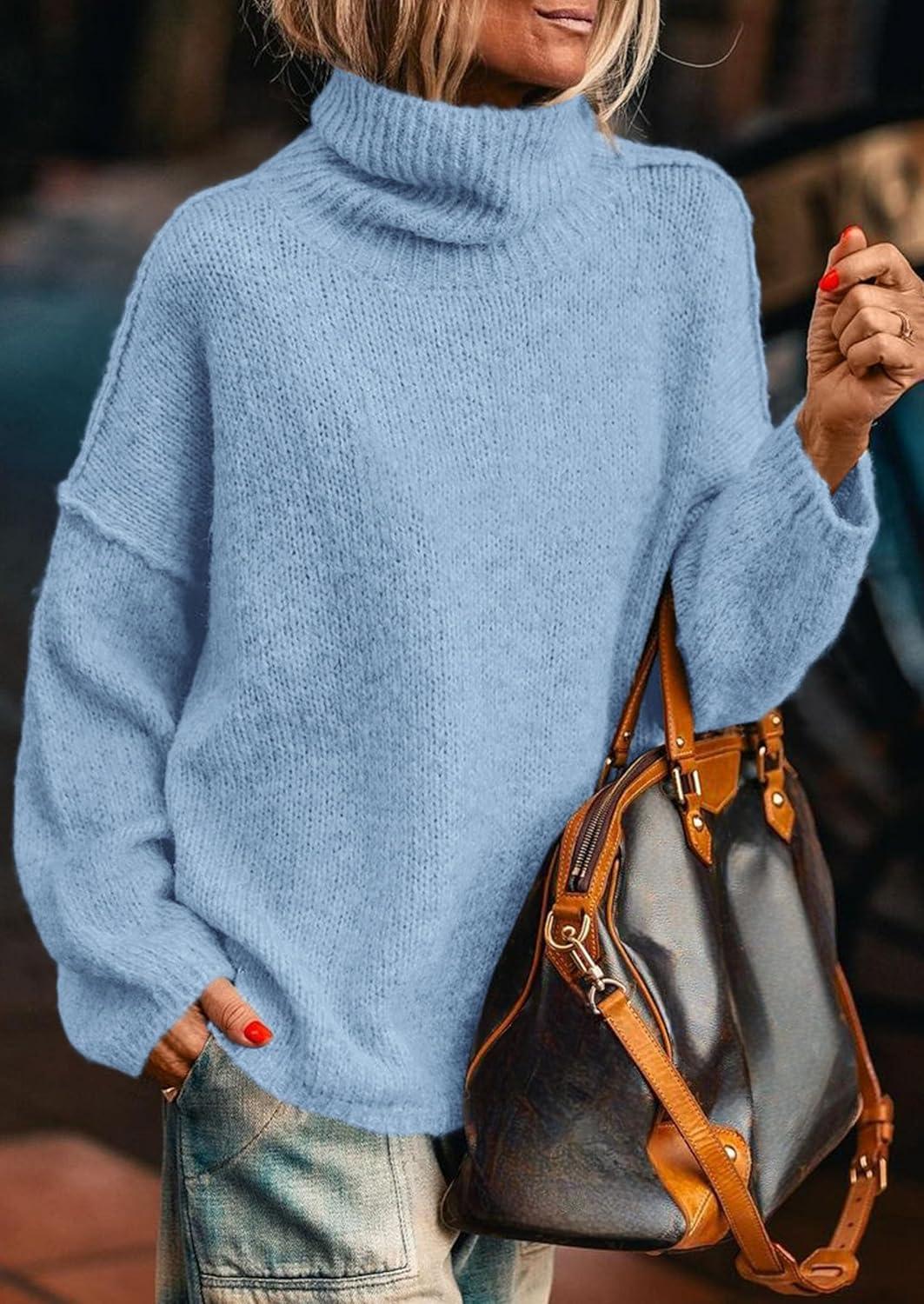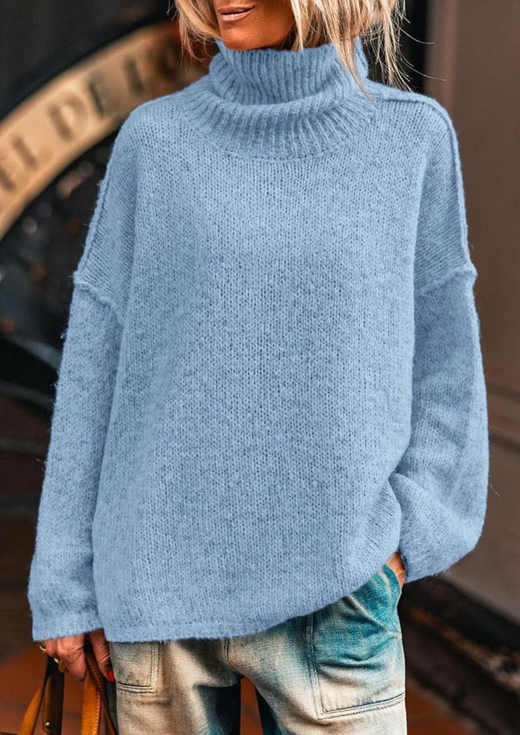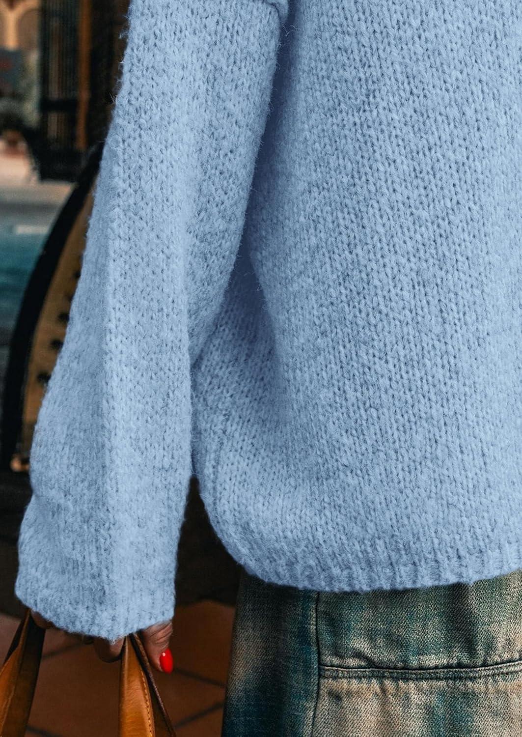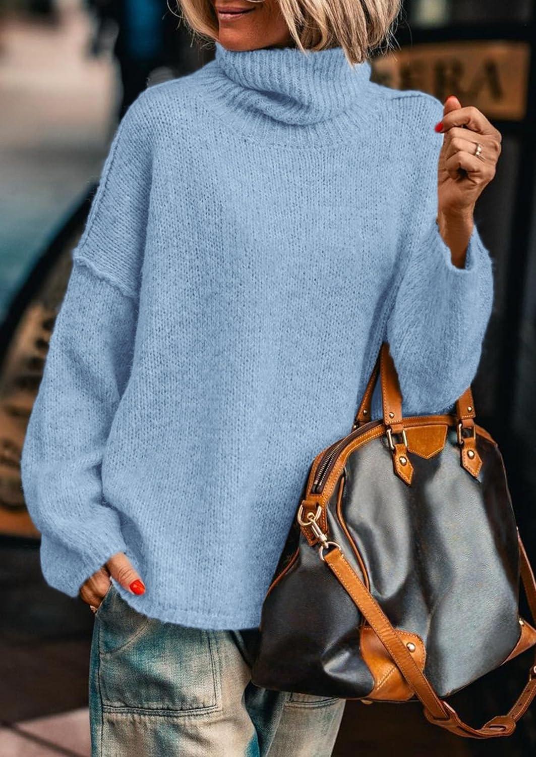 PRETTYGARDEN Womens Turtleneck Long Sleeve Sweater 2025 Fall Trendy Loose Fit Knit Tops Oversized Pullover Sweaters(Sky Blue)