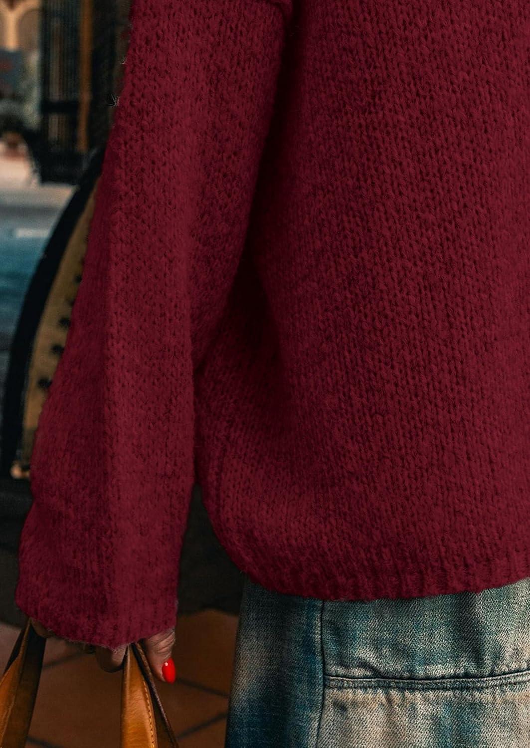 PRETTYGARDEN Womens Turtleneck Long Sleeve Sweater 2025 Fall Trendy Loose Fit Knit Tops Oversized Pullover Sweaters(Wine Red)
