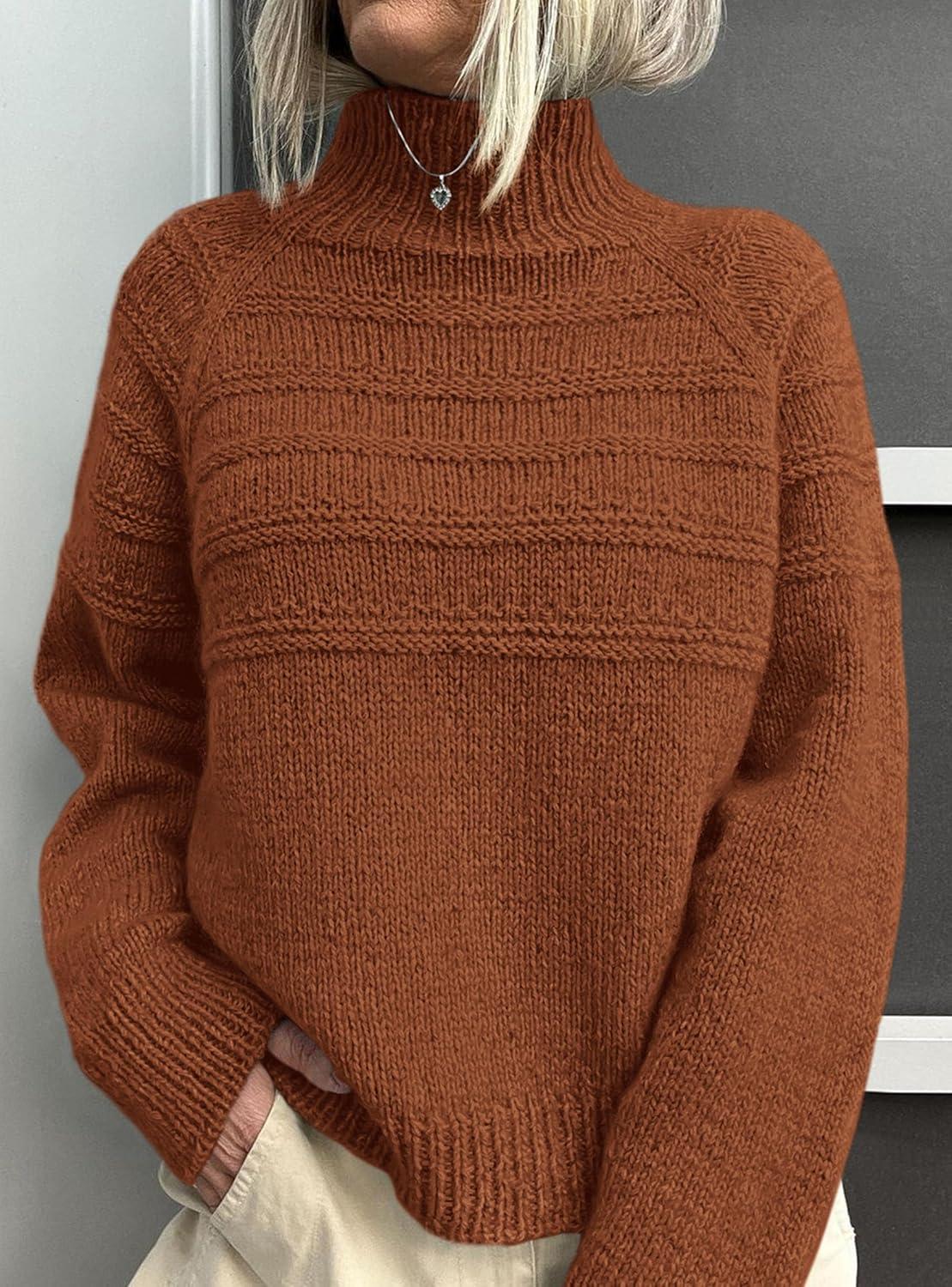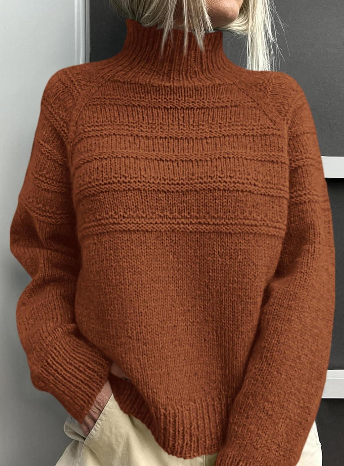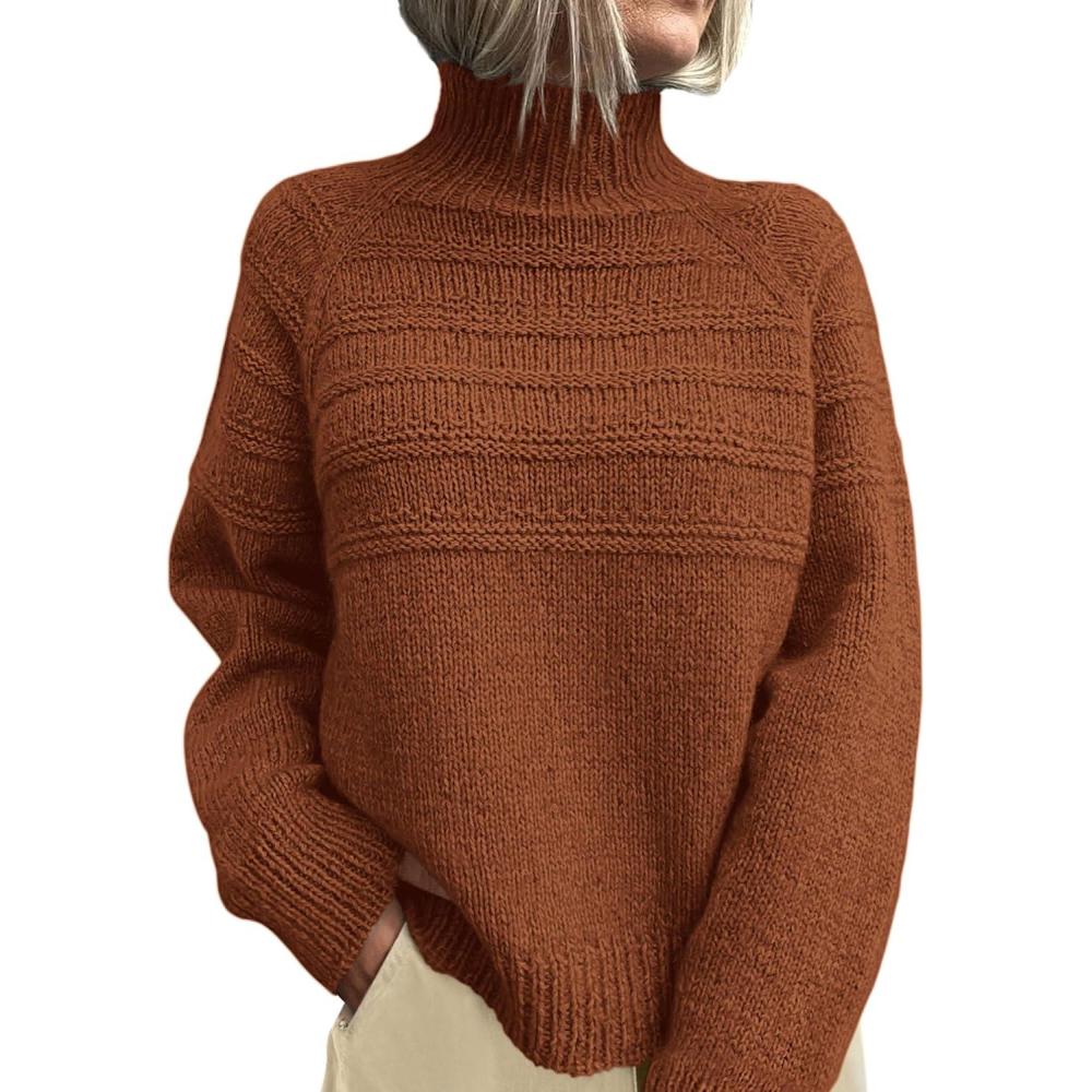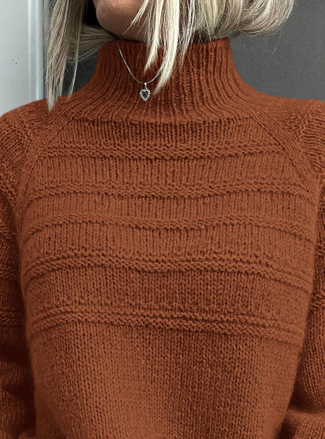 PRETTYGARDEN Women's Turtleneck Sweaters 2025 Fall Chunky Knit Pullover Long Sleeve Jumper Tops Trendy Winter Clothes(Caramel)