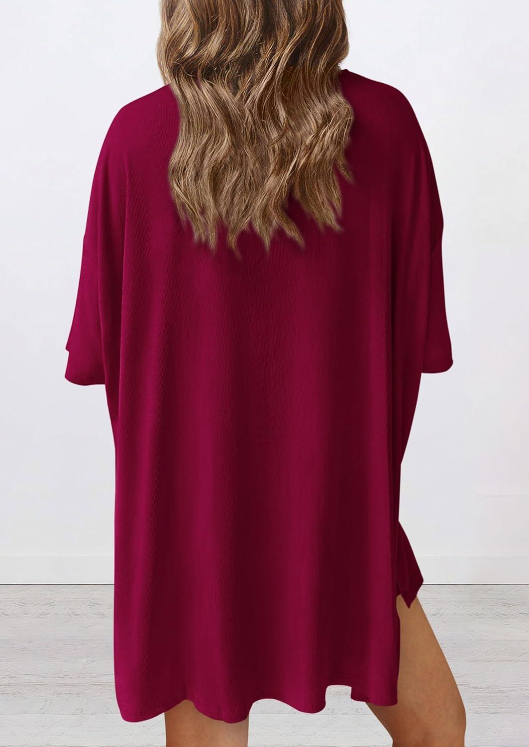 PRETTYGARDEN Women’s Two Piece Lounge Set 2025 Summer Casual Oversized Shirts Biker Shorts Matching Airport Travel Outfit(Deep Red)