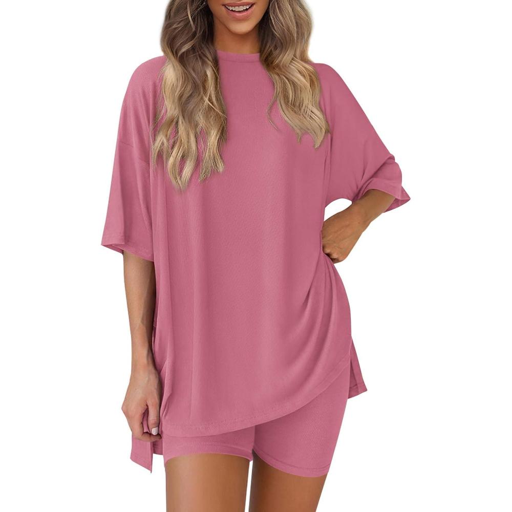 Be the first to review “PRETTYGARDEN Women’s Two Piece Lounge Set 2025 Summer Casual Oversized Shirts Biker Shorts Matching Airport Travel Outfit(Pink)”