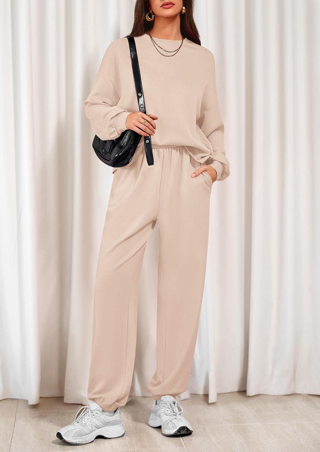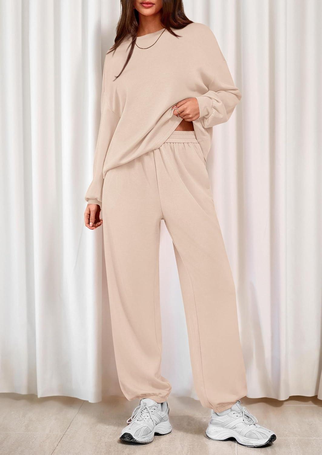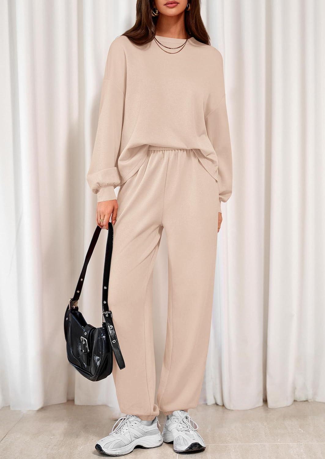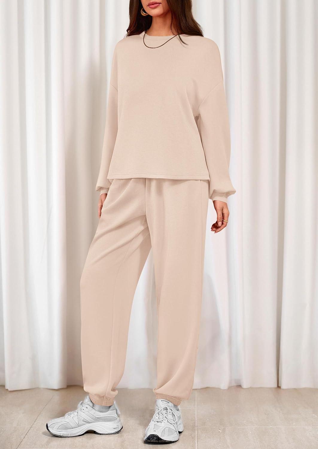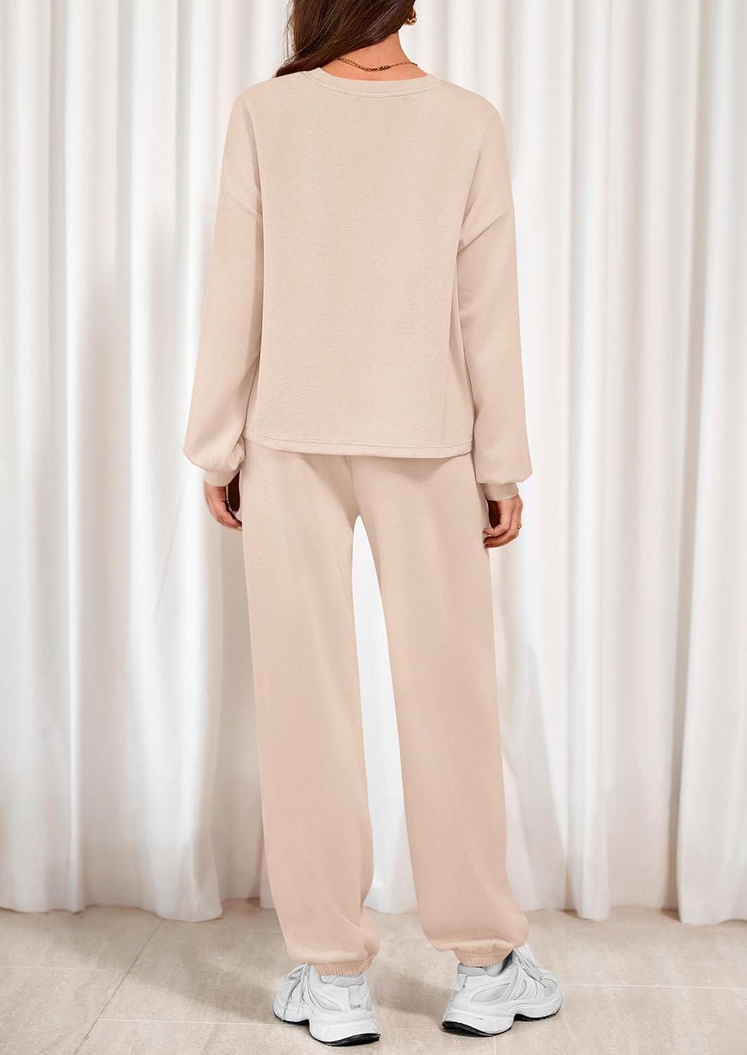 PRETTYGARDEN Women's Two Piece Lounge Sets 2025 Fall Airport Outfits Long Sleeve Pullover Tops Sweatpants Matching Clothing(Beige)