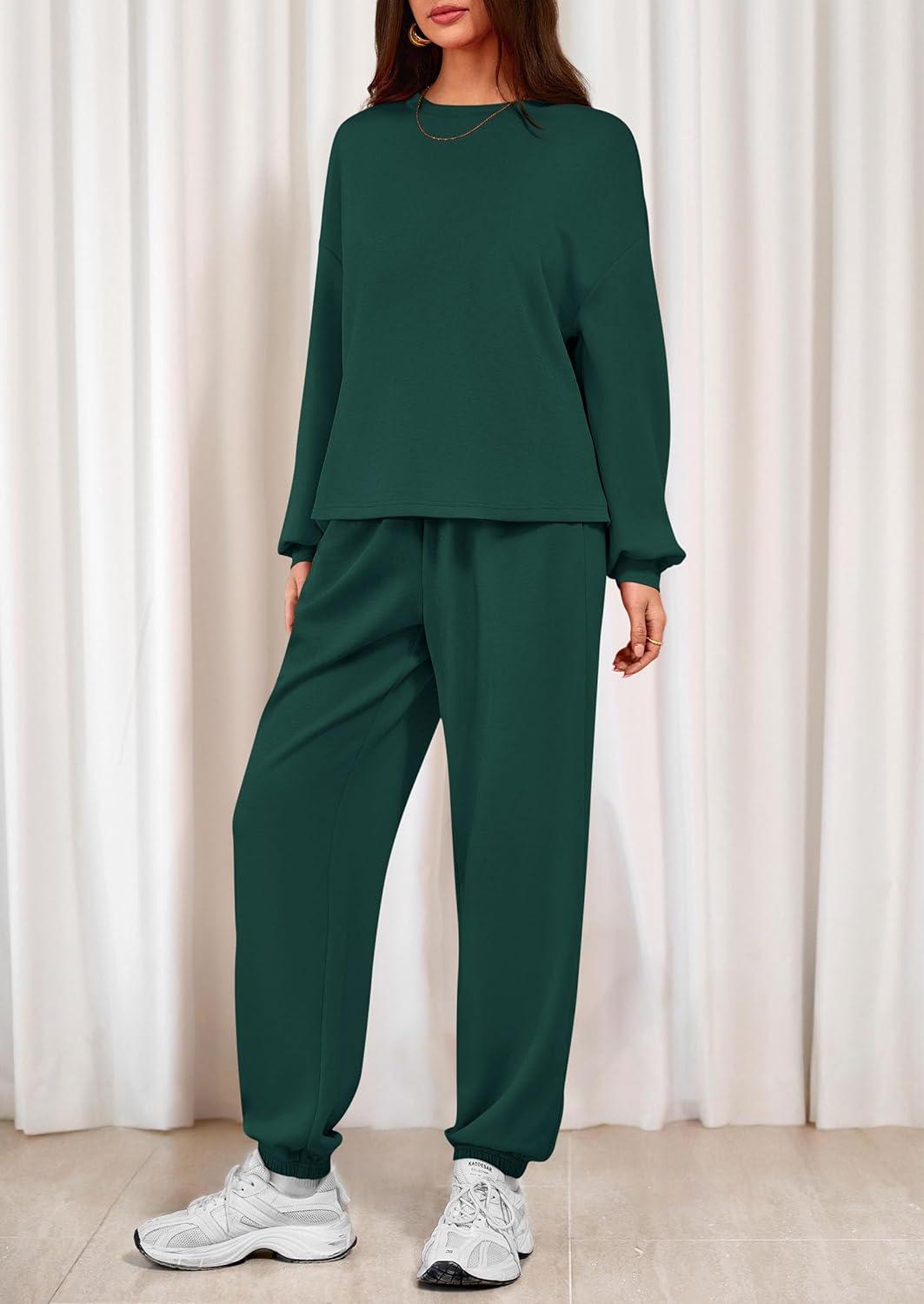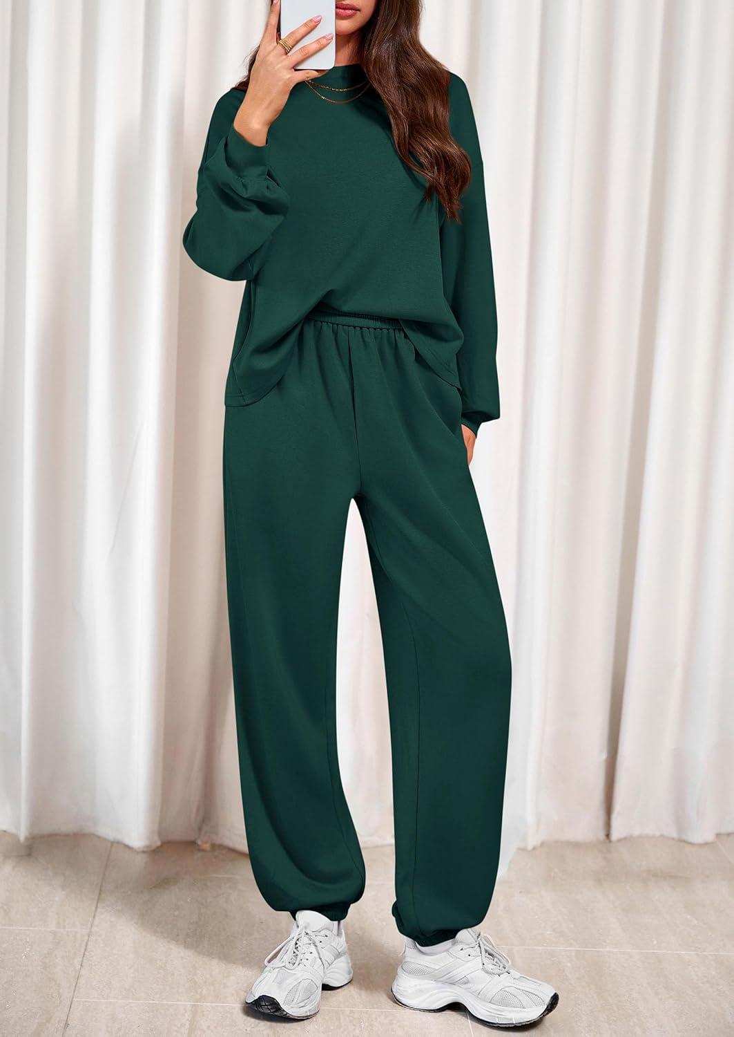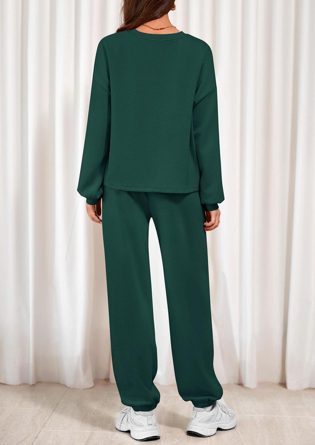 PRETTYGARDEN Women's Two Piece Lounge Sets 2025 Fall Airport Outfits Long Sleeve Pullover Tops Sweatpants Matching Clothing(Dark Green)