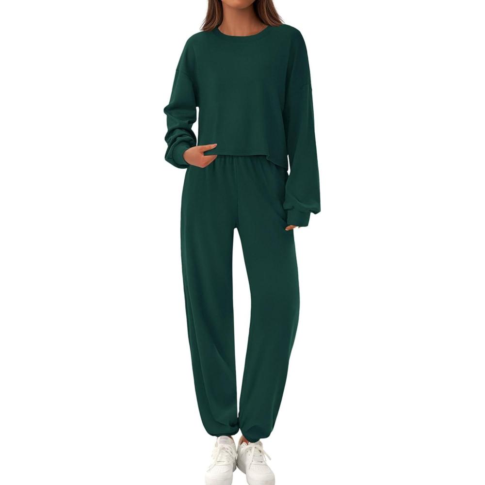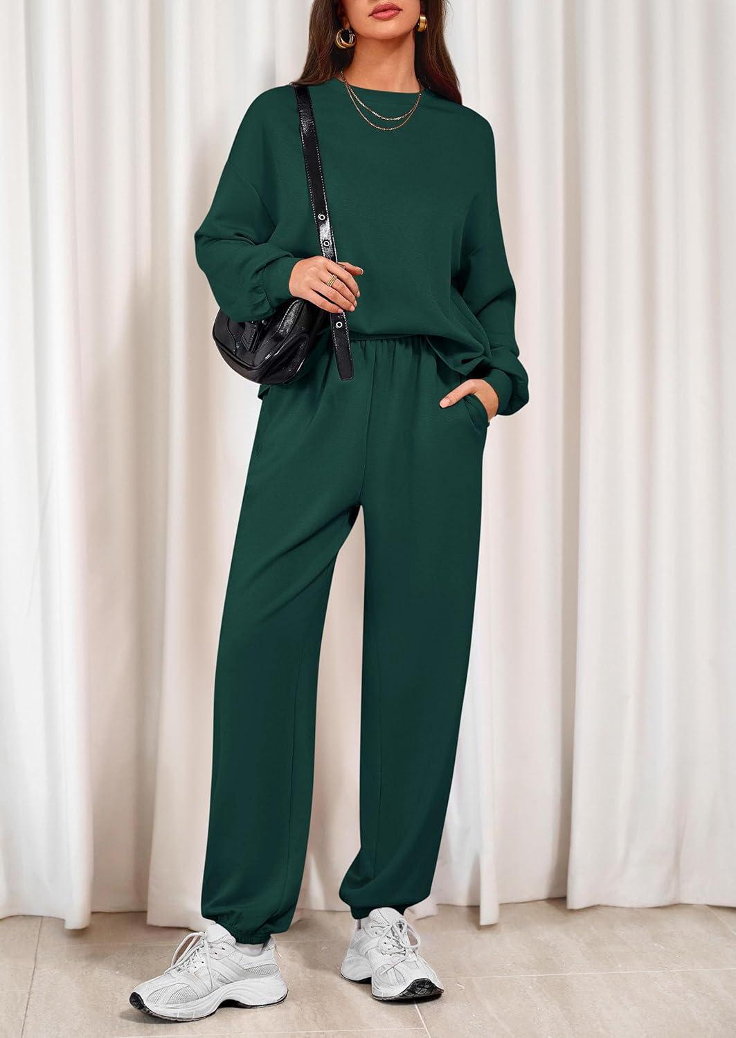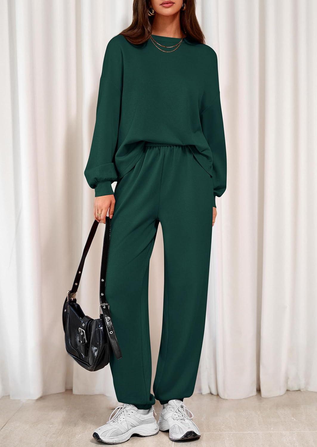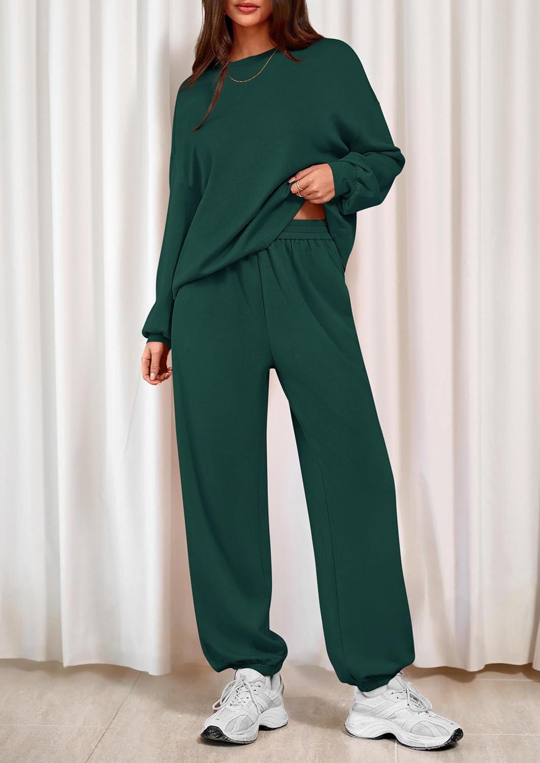 PRETTYGARDEN Women's Two Piece Lounge Sets 2025 Fall Airport Outfits Long Sleeve Pullover Tops Sweatpants Matching Clothing(Dark Green)