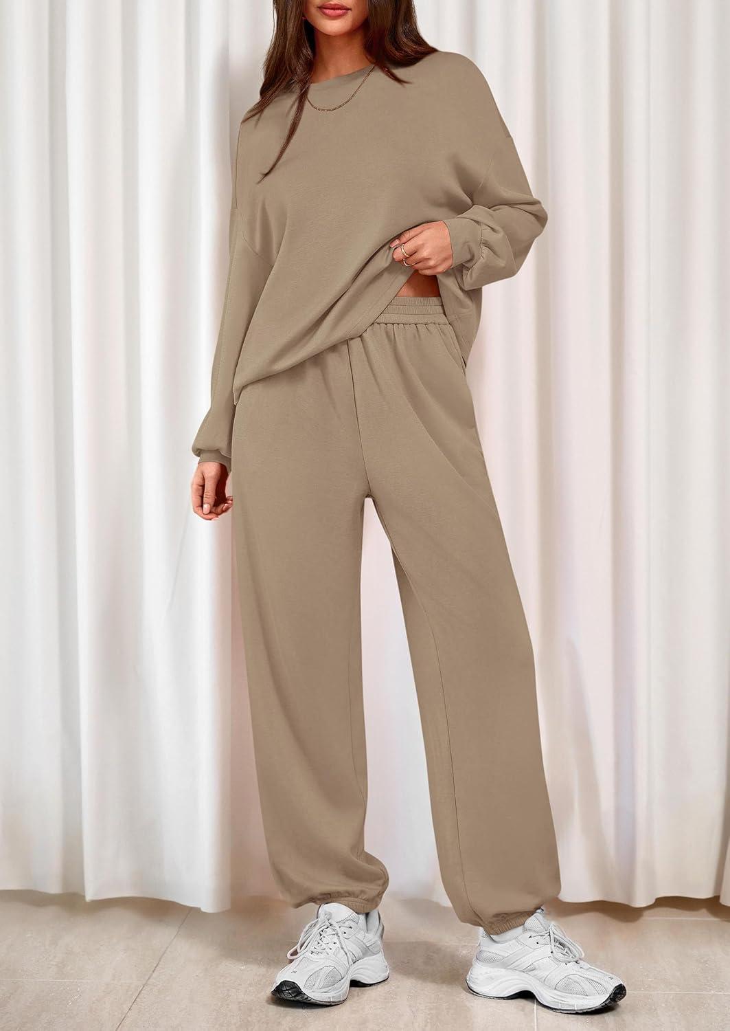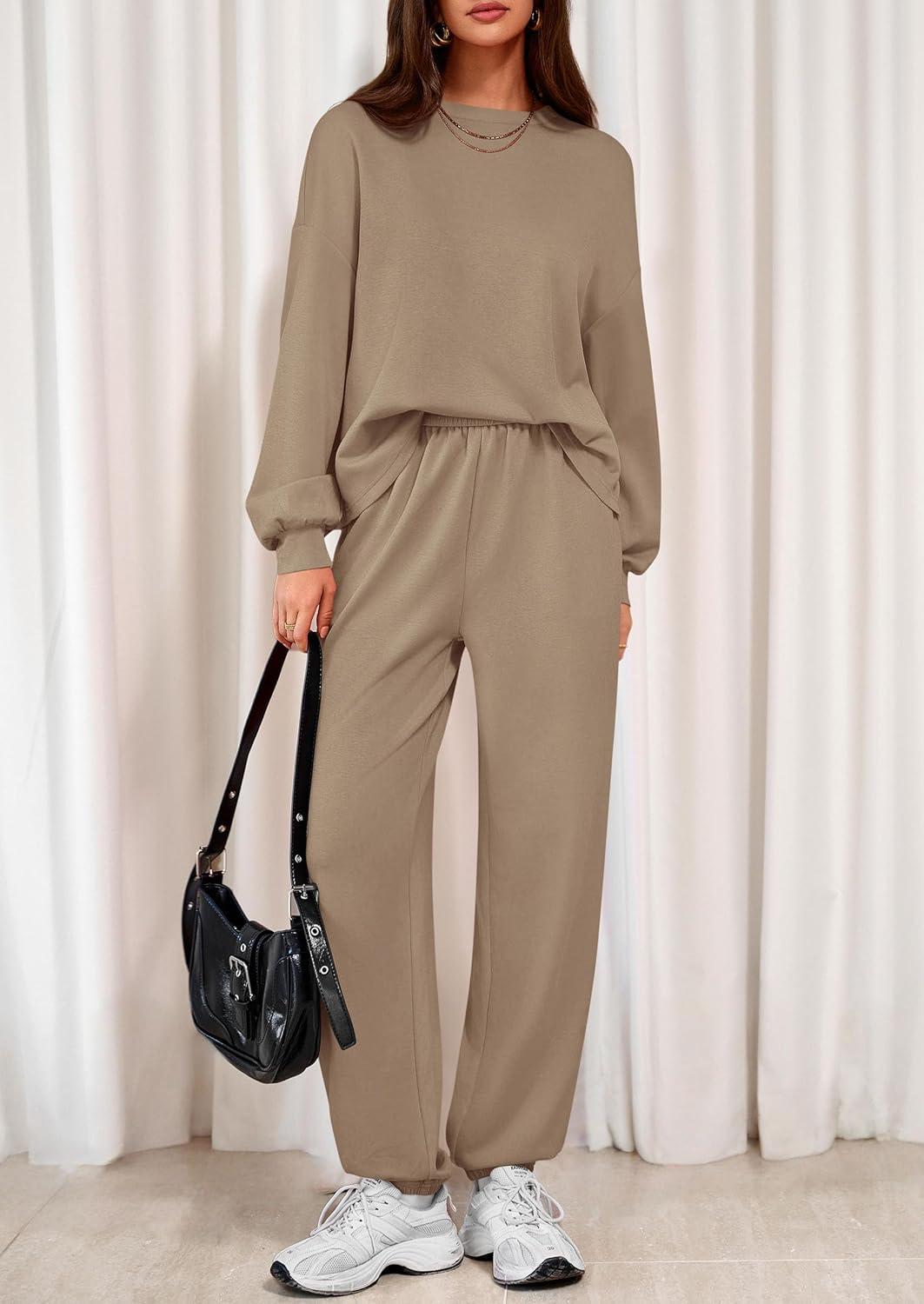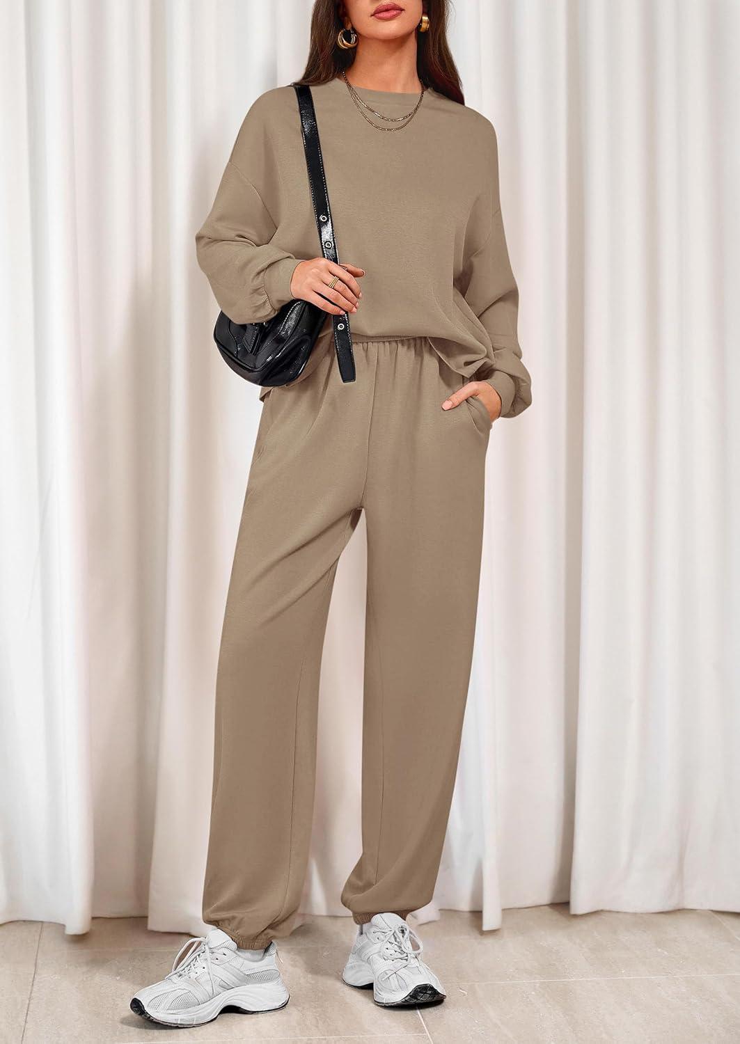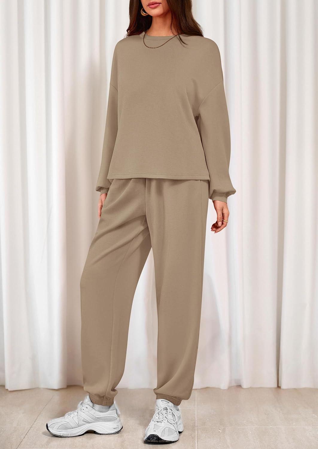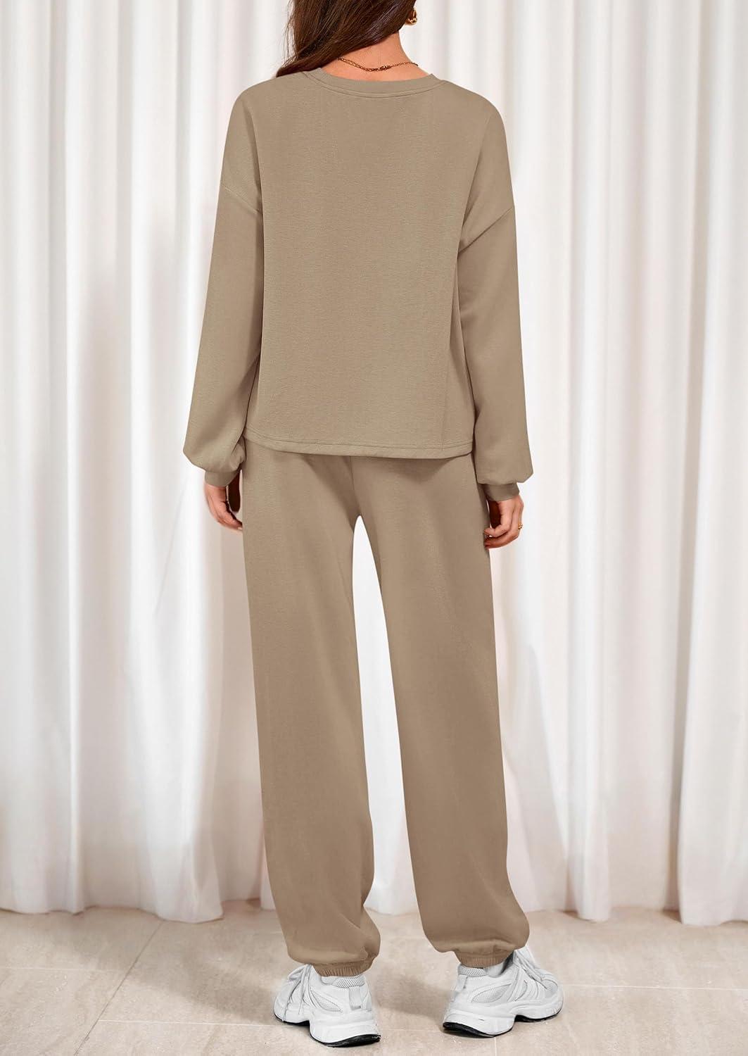 PRETTYGARDEN Women's Two Piece Lounge Sets 2025 Fall Airport Outfits Long Sleeve Pullover Tops Sweatpants Matching Clothing(Khaki)