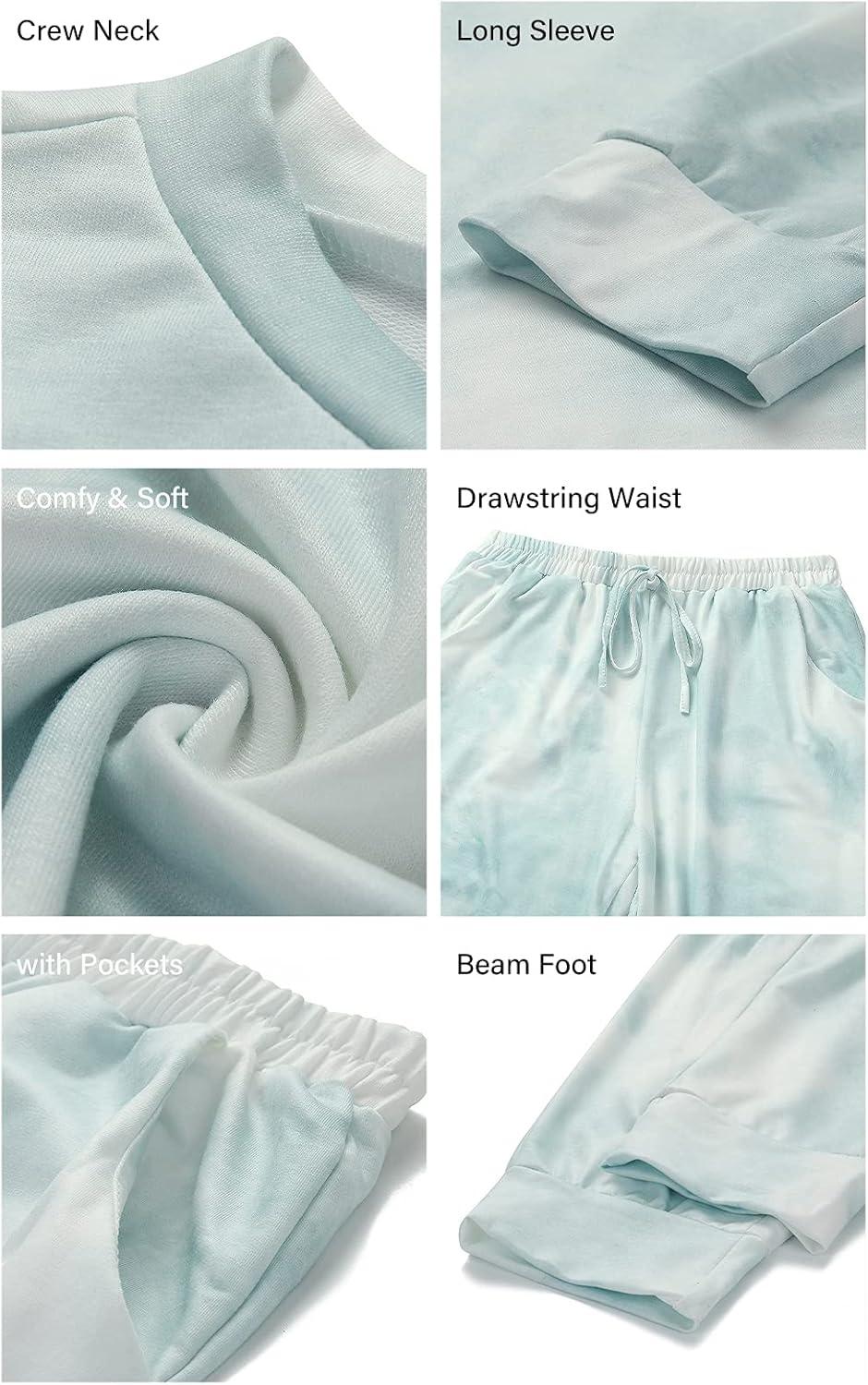 PRETTYGARDEN Women’s Two Piece Loungewear Fall Casual Long Sleeve Tops Jogger Pants Pajama Sets Matching Outfits Clothing(Blue)