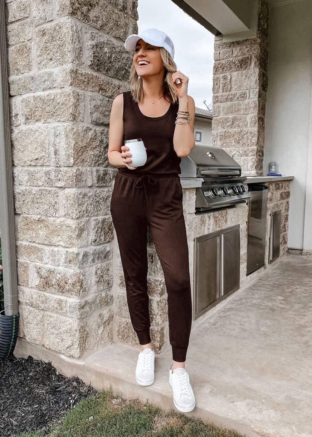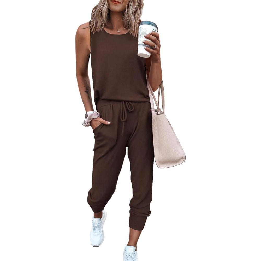 PRETTYGARDEN Women’s Two Piece Outfit Sets Summer Casual Sleeveless Crewneck Tops Matching Travel Tracksuit Lounge Wear(Brown)