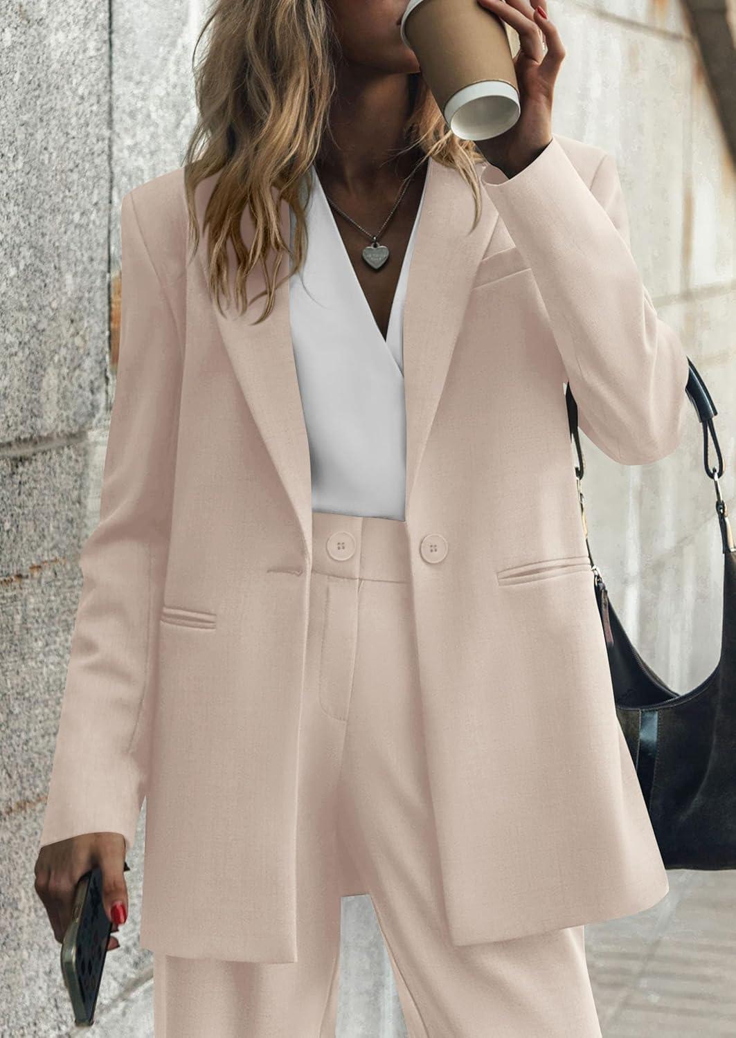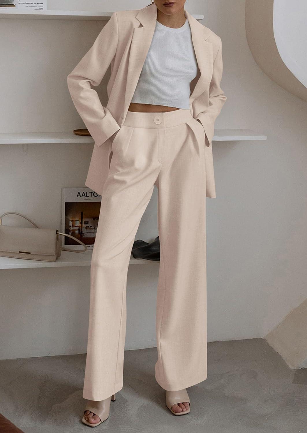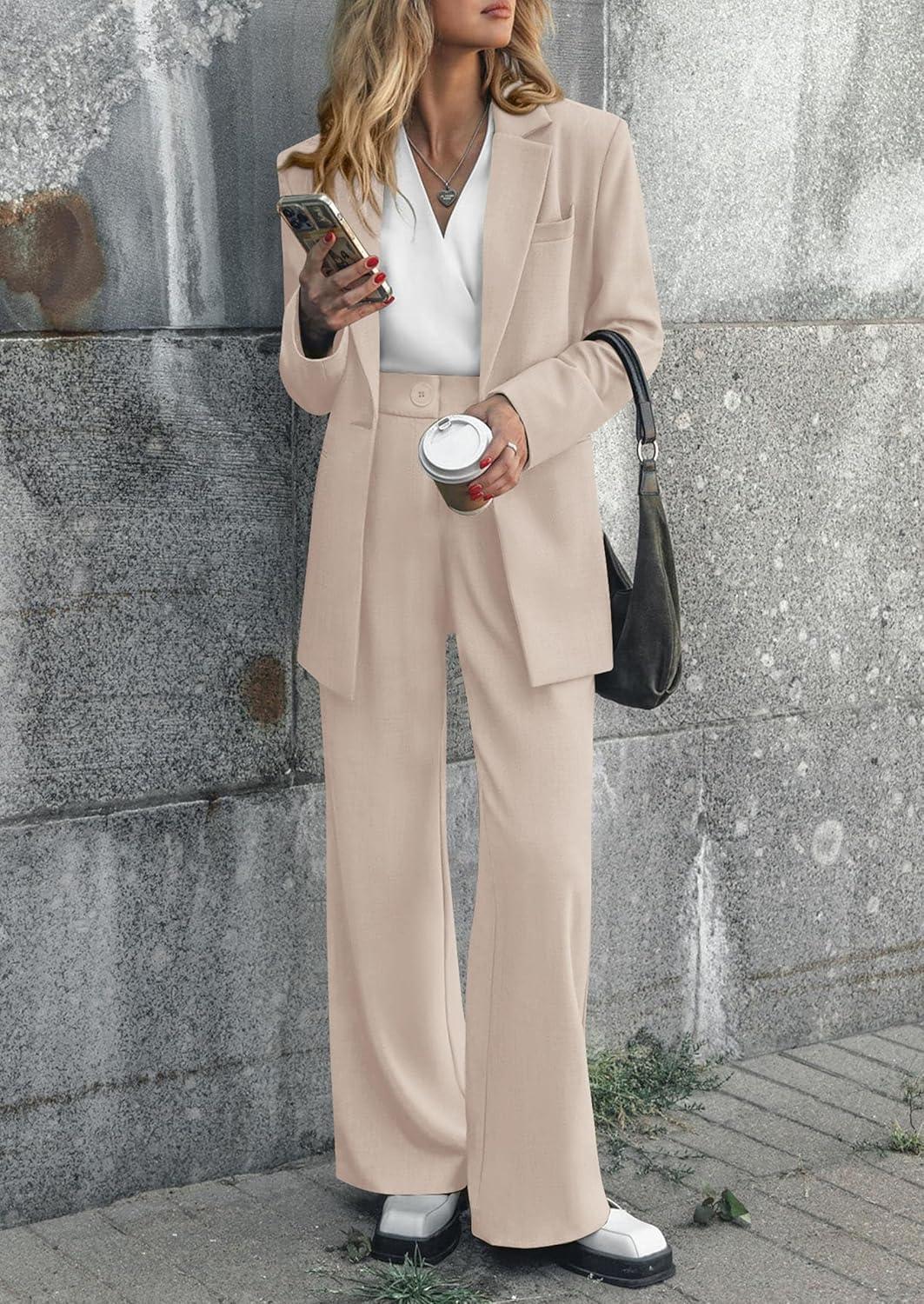 PRETTYGARDEN Women's Two Piece Outfits Dressy Blazer Jacket Wide Leg Pants 2025 Fall Business Casual Office Work Suit Sets(Beige)