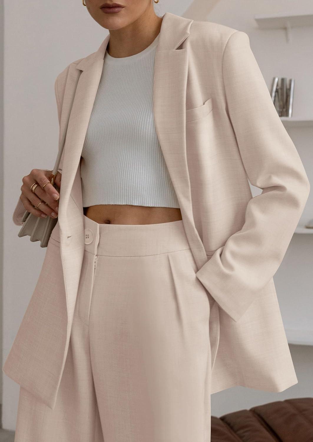 PRETTYGARDEN Women’s Two Piece Outfits Dressy Blazer Jacket Wide Leg Pants 2025 Fall Business Casual Office Work Suit Sets(Beige)