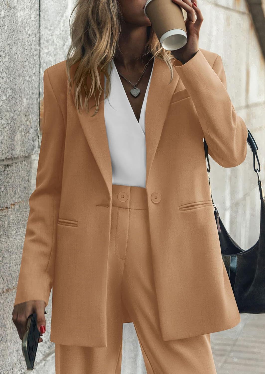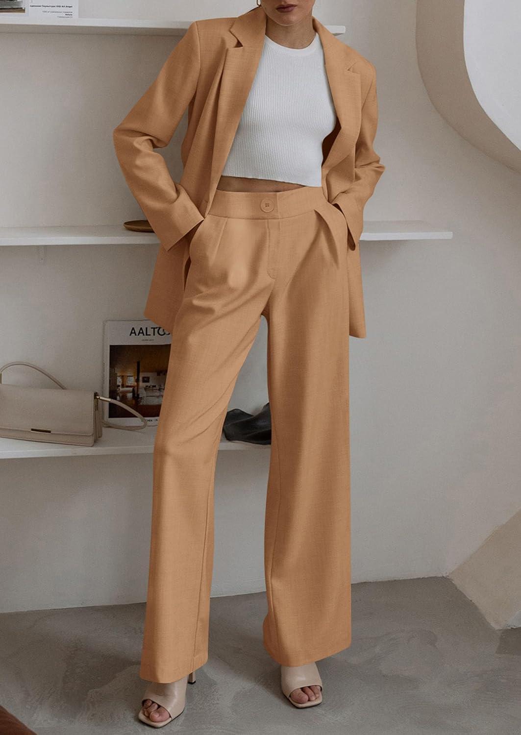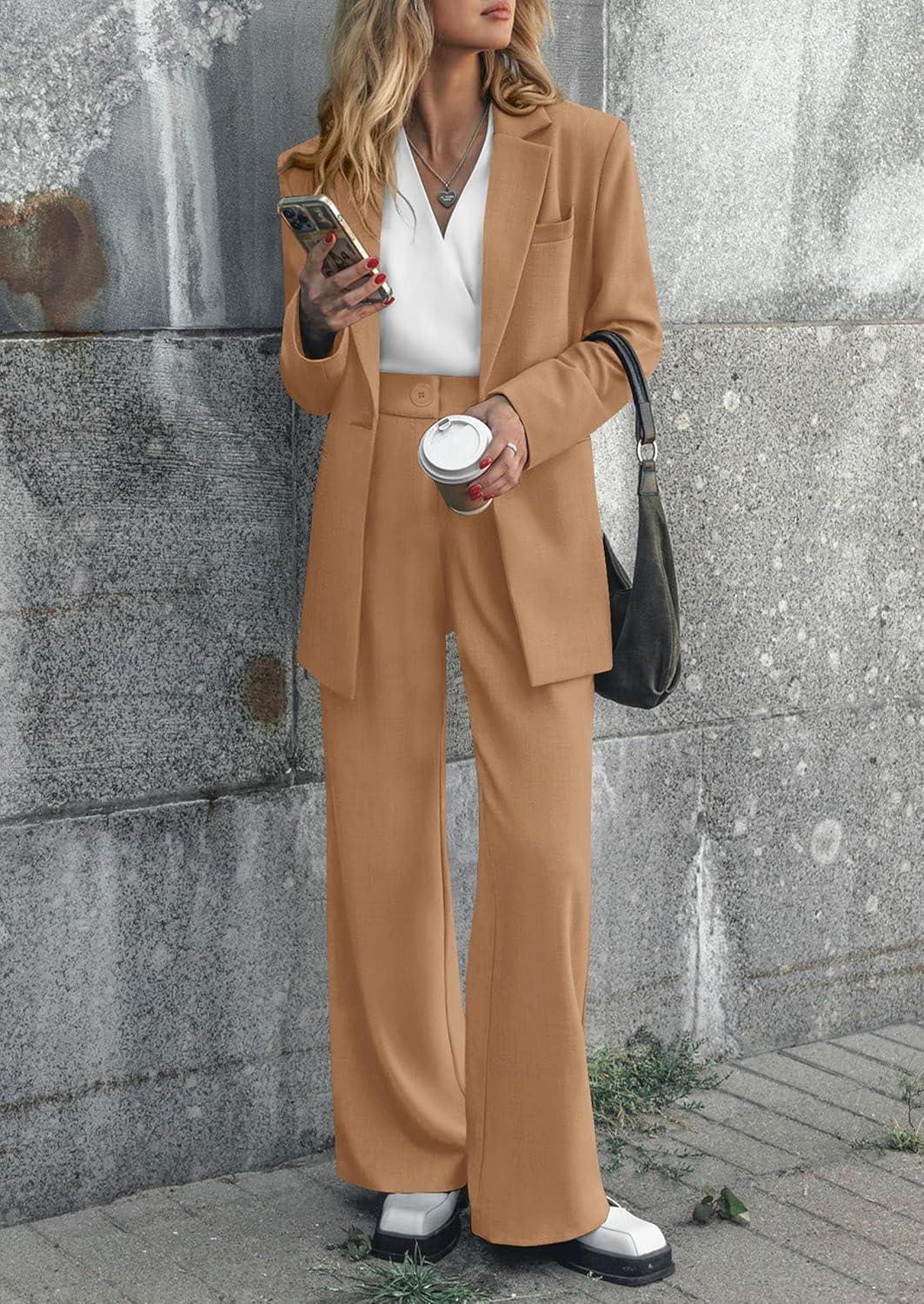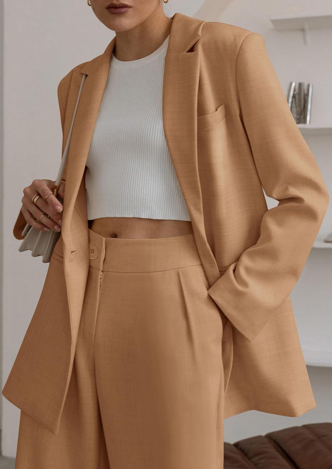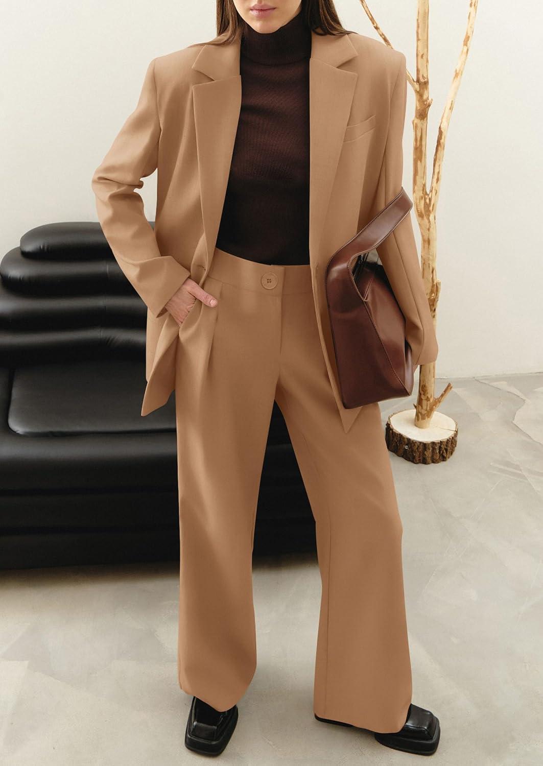 PRETTYGARDEN Women's Two Piece Outfits Dressy Blazer Jacket Wide Leg Pants 2025 Fall Business Casual Office Work Suit Sets(Khaki)