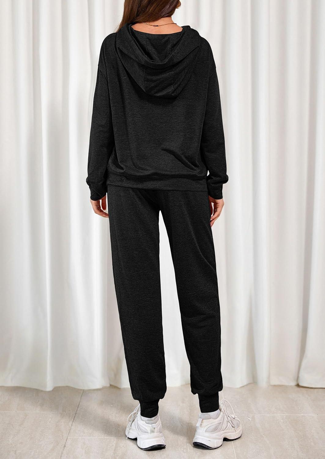 PRETTYGARDEN Women's Two Piece Outfits Sweatsuits Lounge Sets Hoodies Sweatshirt Joggers Sweatpants 2025 Fall Fashion Clothes(Black)