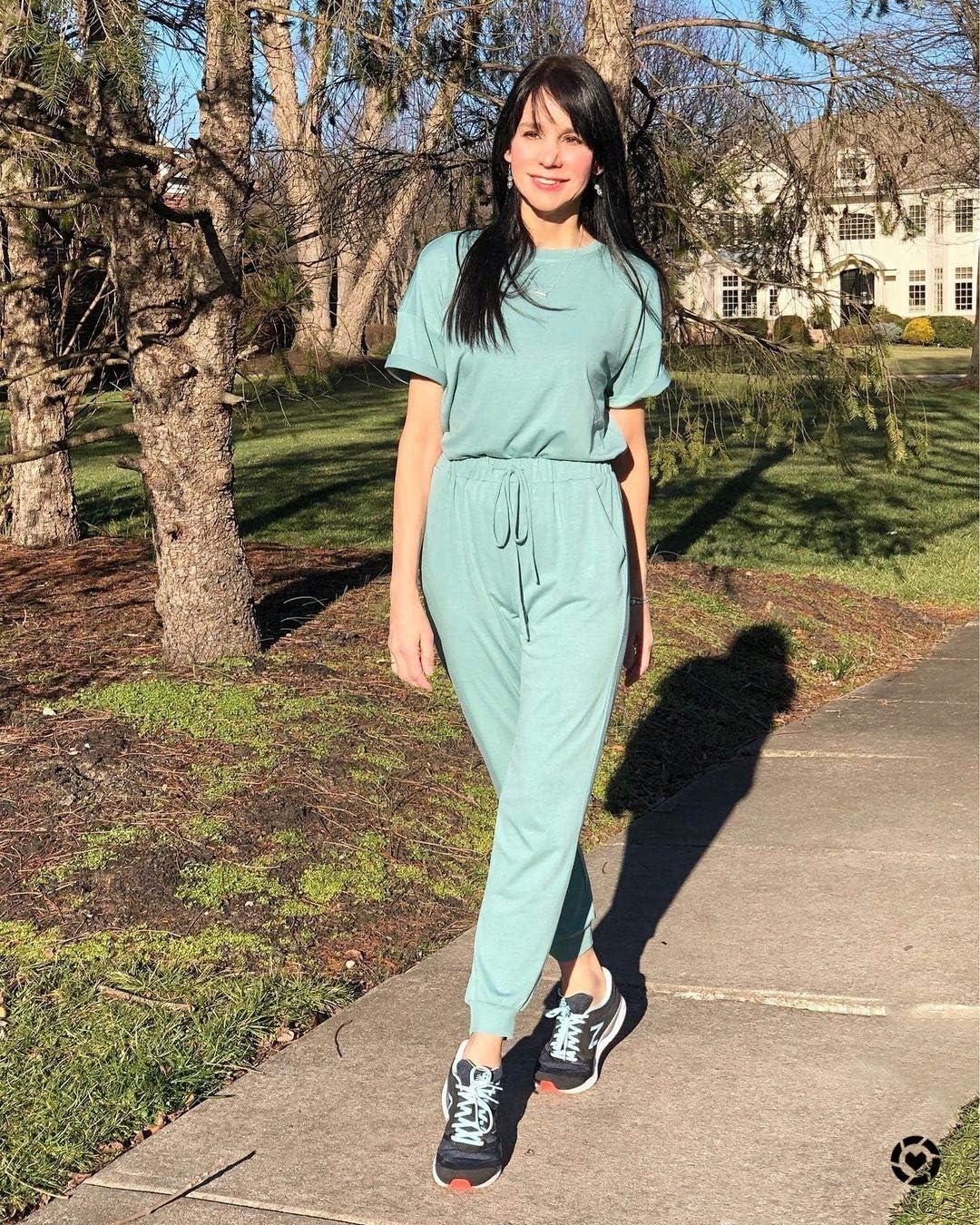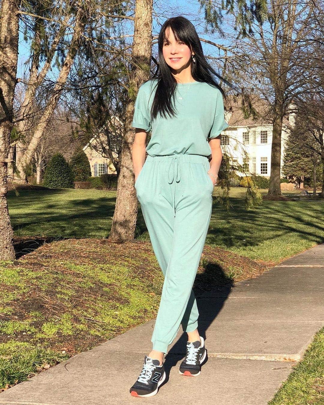 imagePRETTYGARDEN Womens Two Piece Sets 2025 Summer Spring Jogger Pants Travel Vacation Lounge Outfits Airplane Matching ClothesGreen