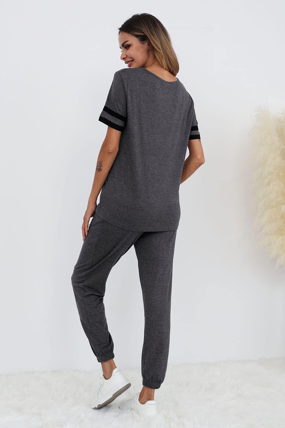 PRETTYGARDEN Women's Two Piece Sets 2025 Summer Spring Jogger Pants Travel Vacation Lounge Outfits Airplane Matching Clothes(Striped Dark Grey)