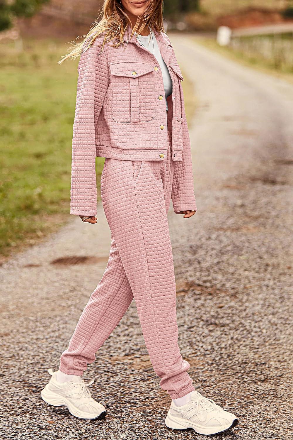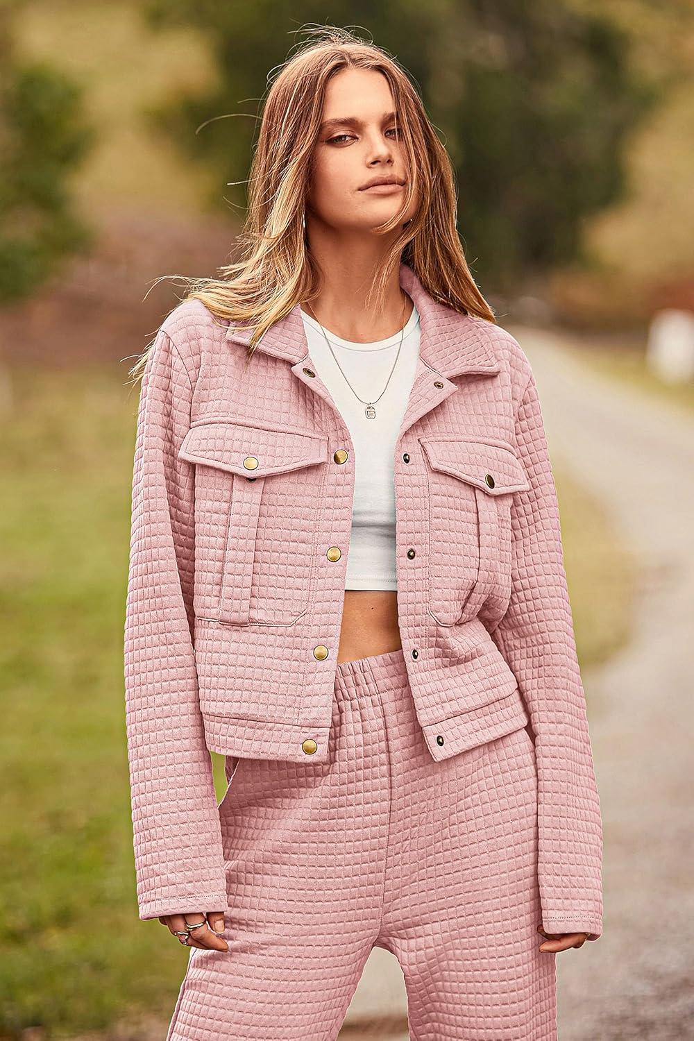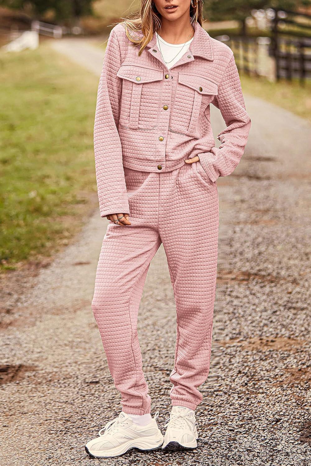 PRETTYGARDEN Womens Two Piece Sets Fall 2025 Long Sleeve Button Down Shacket Jacket Long Sweatpants Tracksuit Winter Clothes(Pink)