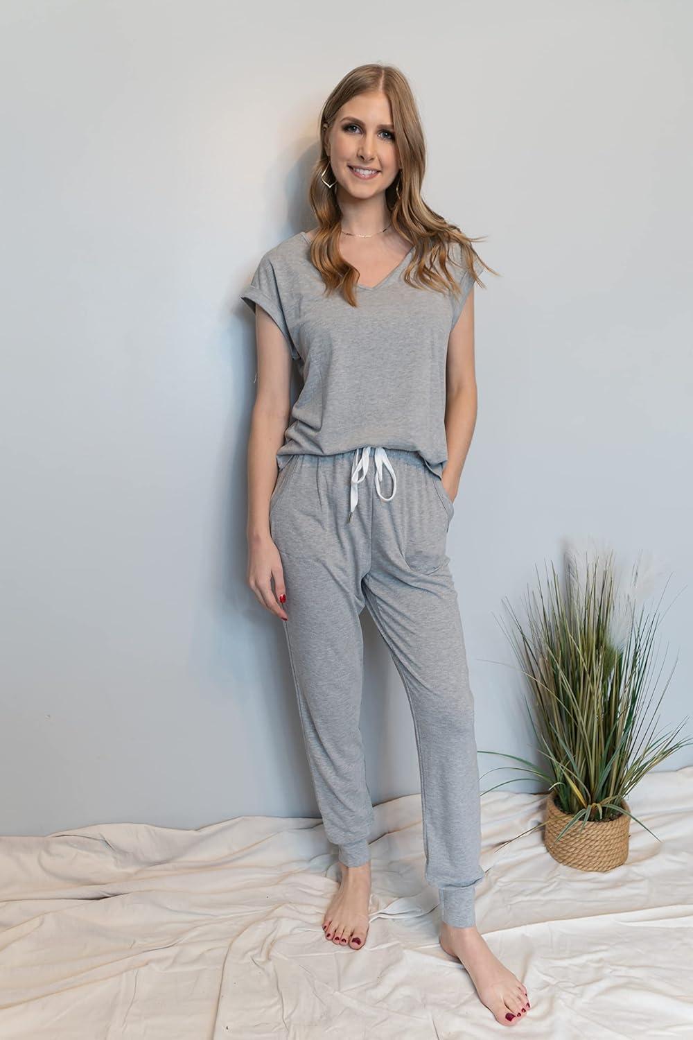 PRETTYGARDEN Women's Two Piece Tracksuit Casual Summer V Neck Short Sleeve Tops Drawstring Jogger Pants Lounge Outfit Sets(Light Grey)
