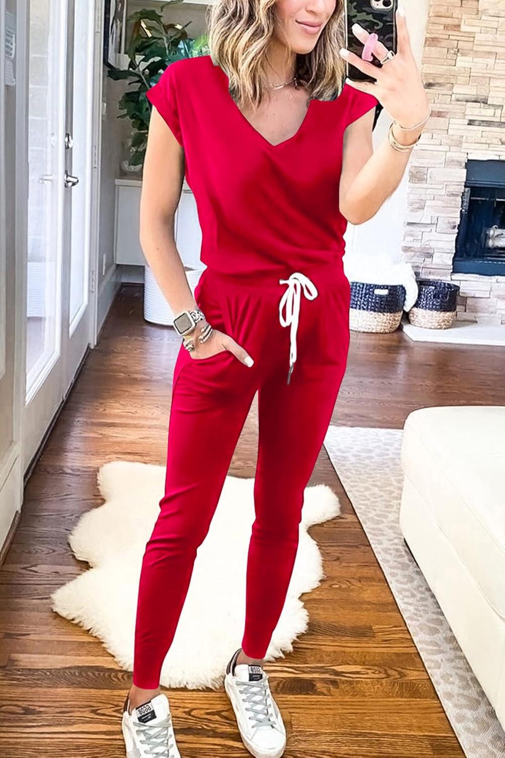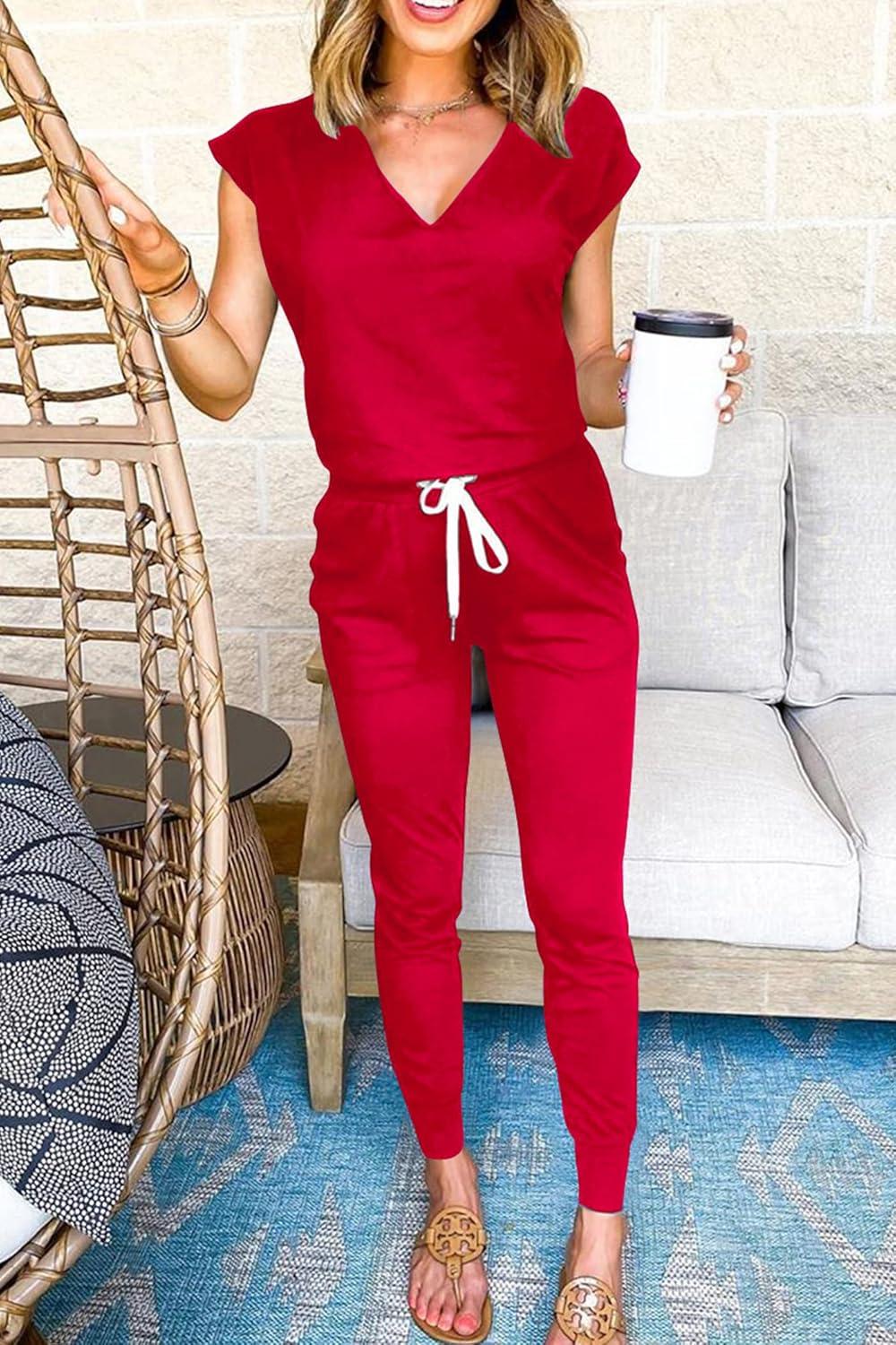 Be the first to review “PRETTYGARDEN Women’s Two Piece Tracksuit Casual Summer V Neck Short Sleeve Tops Drawstring Jogger Pants Lounge Outfit Sets(Red)”