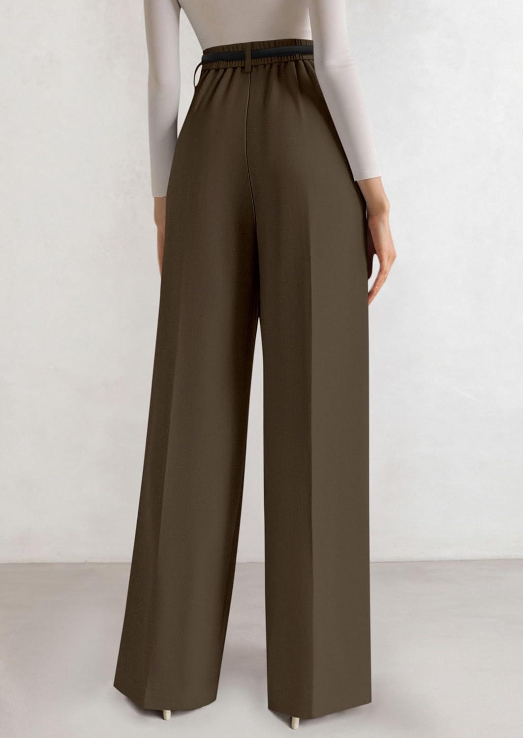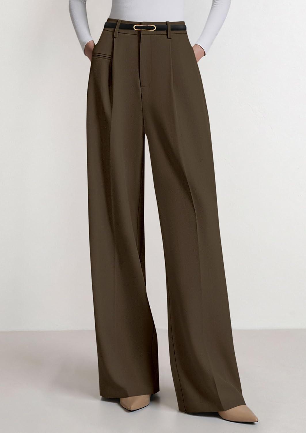 PRETTYGARDEN Womens Wide Leg Dress Pants 2025 Business Casual Flowy Work Palazzo Pants High Waisted Slacks Trousers(Coffee)